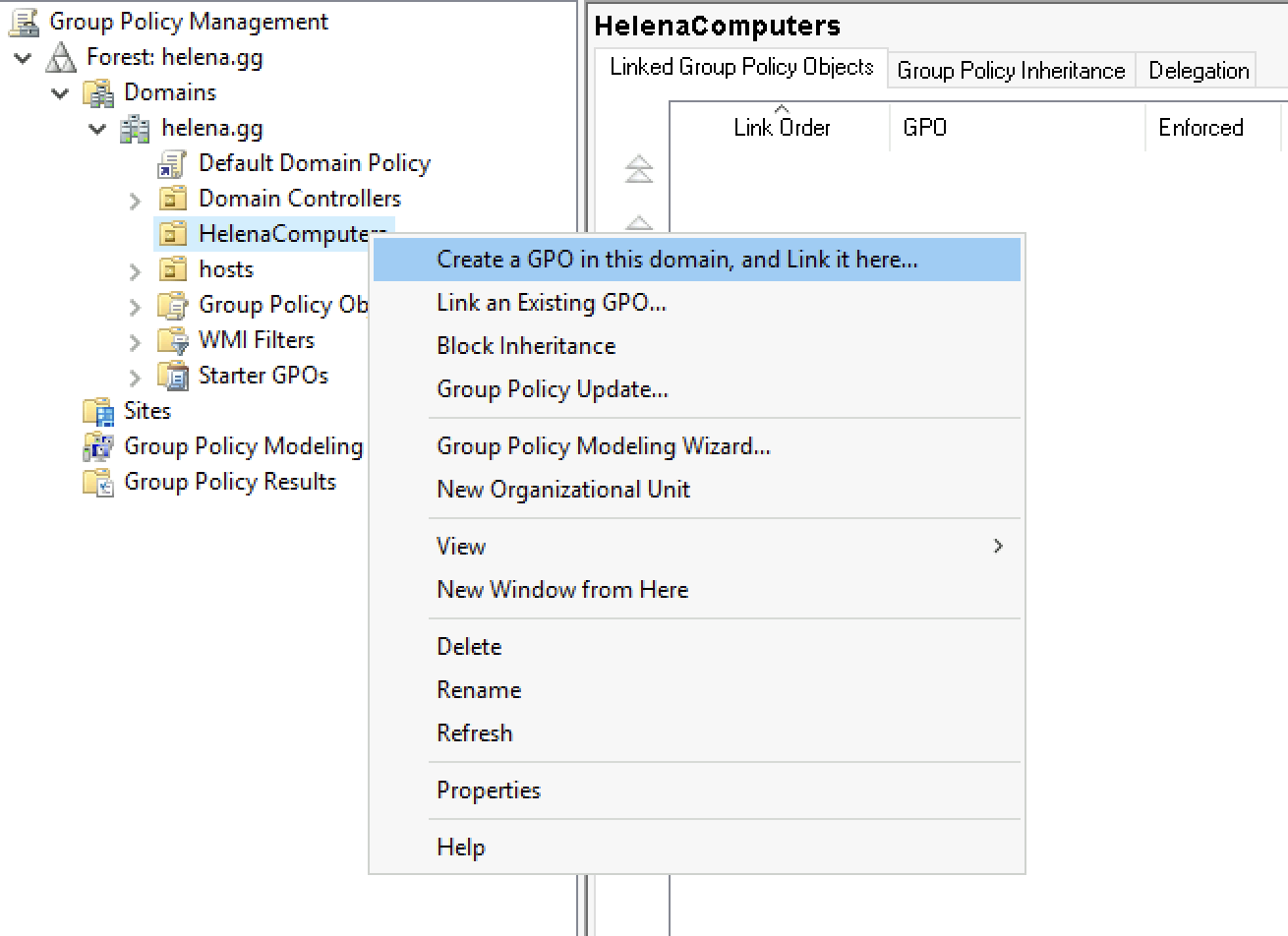 To create GPO, open Group Policy Management, and right click on the OU and select Create GPO