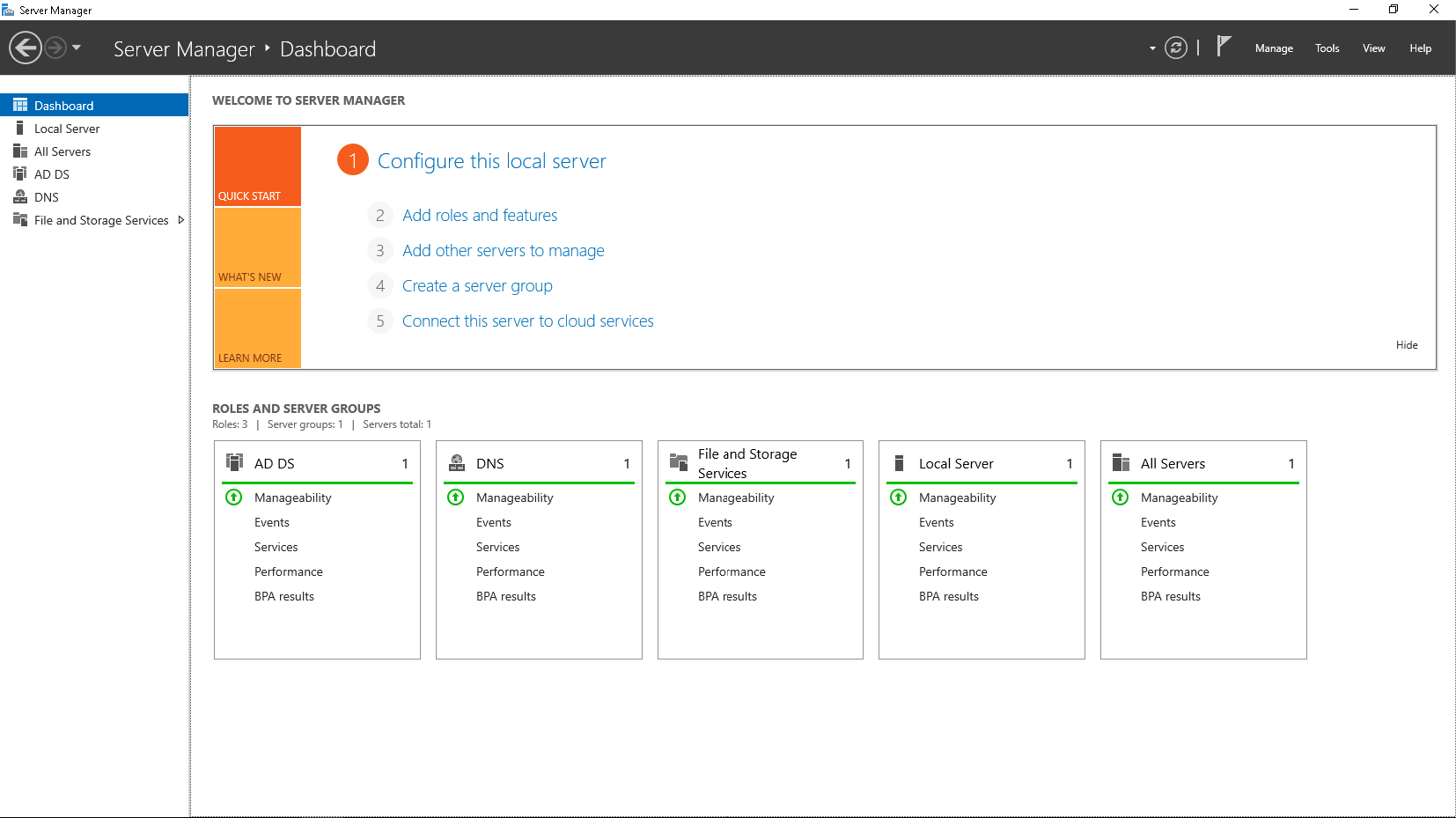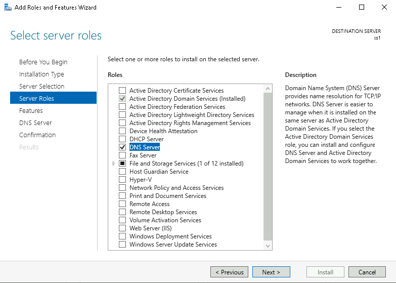Open Server Manager » Add Roles and Features, select Active Directory Domain Services and DNS Server