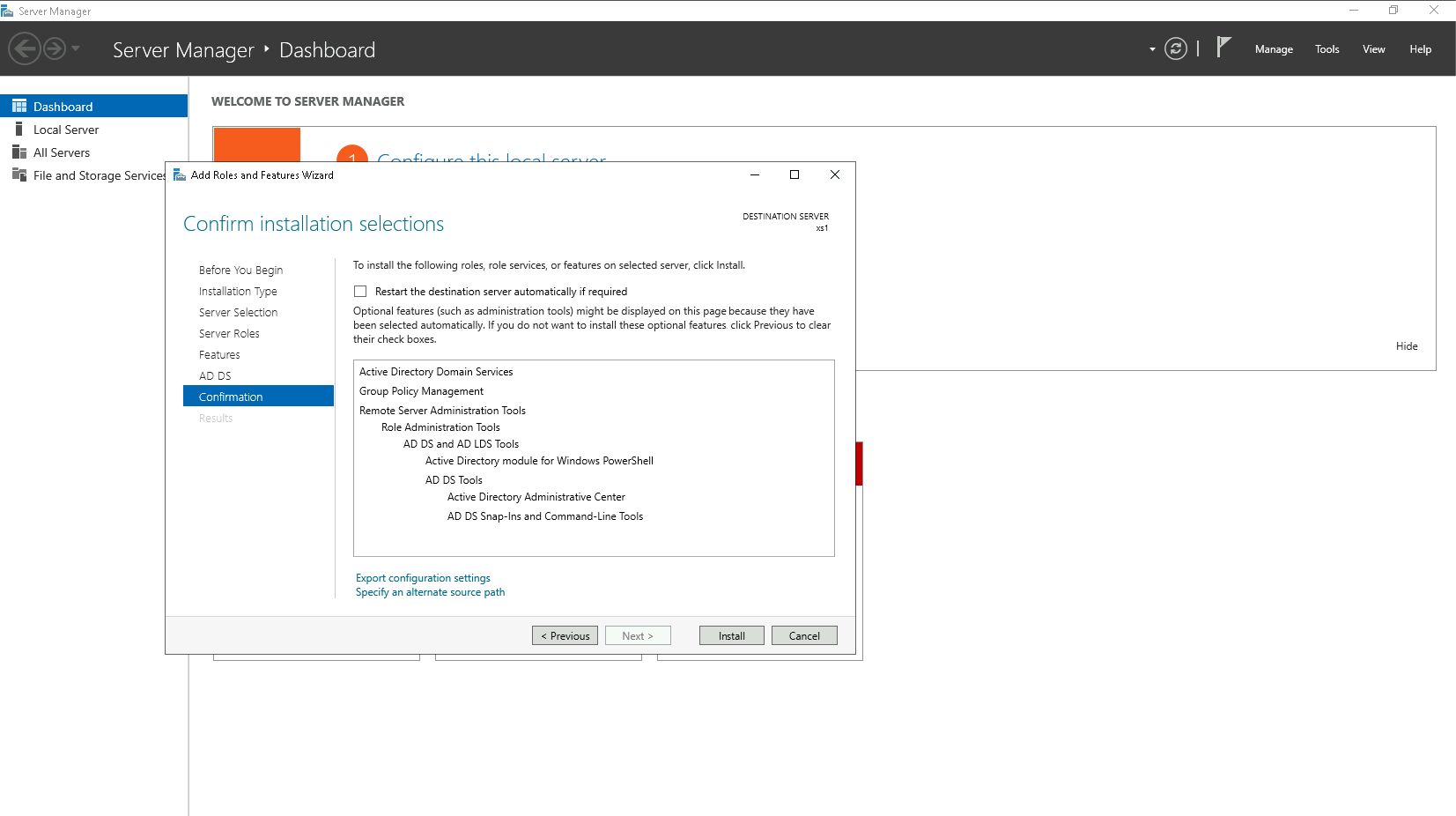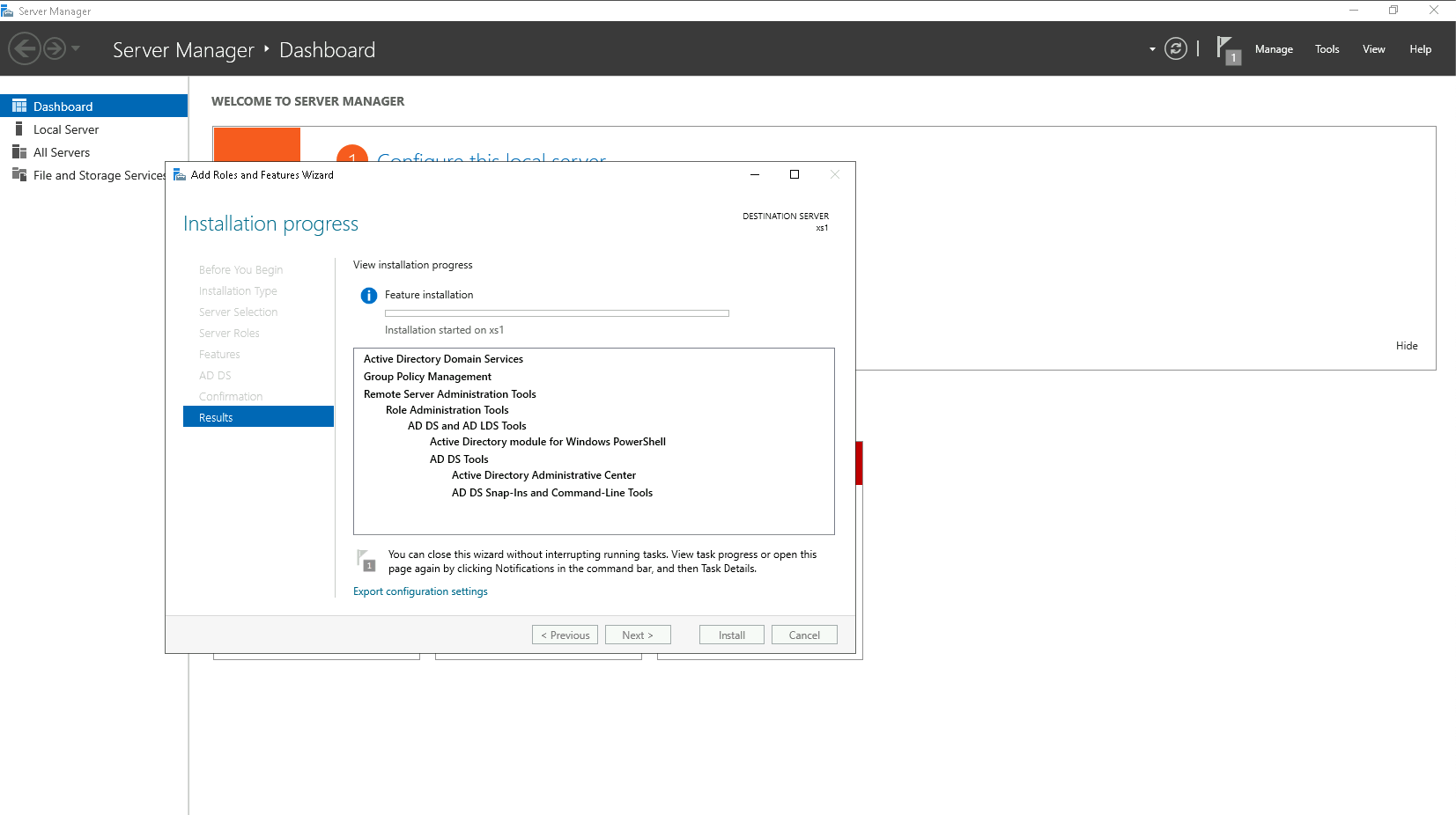 The server will restart, and after that the AD DS configuration should conclude