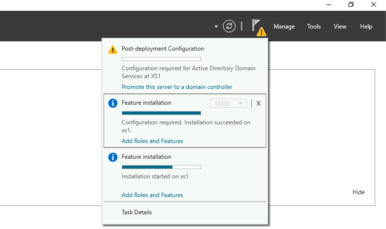 After the roles are added, select Promote this server to a domain controller