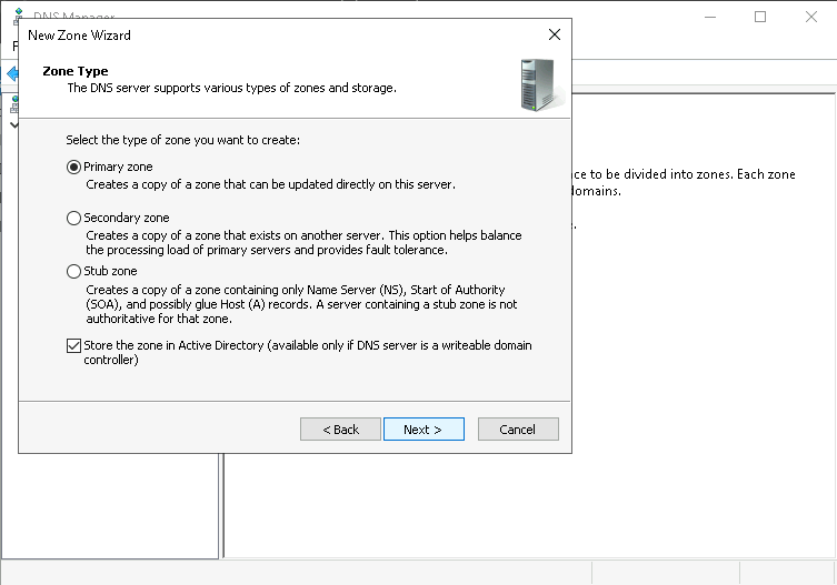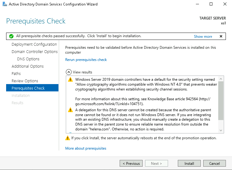 The wizard might shows that it cannot create DNS delegation. That’s fine we’ll deal with it later