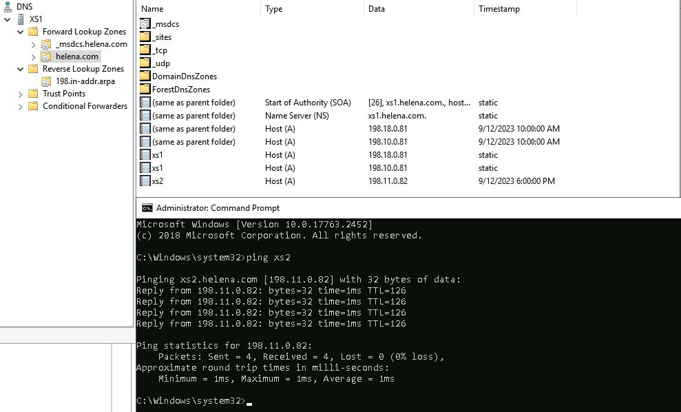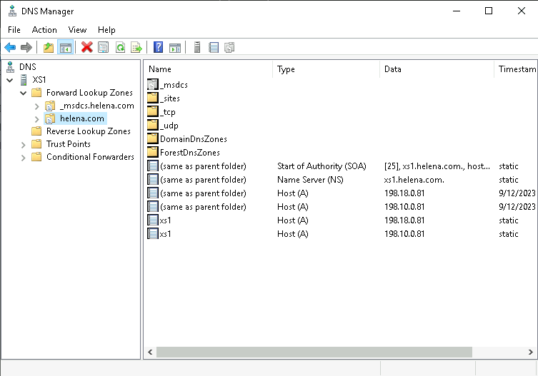 Open DNS Manager, make sure the helena.com zone is present