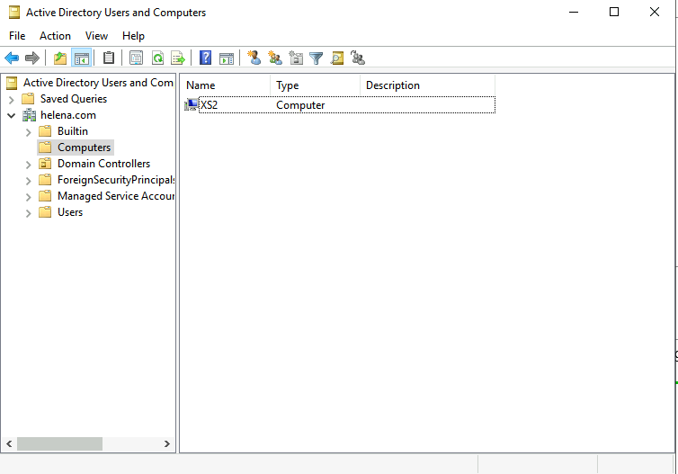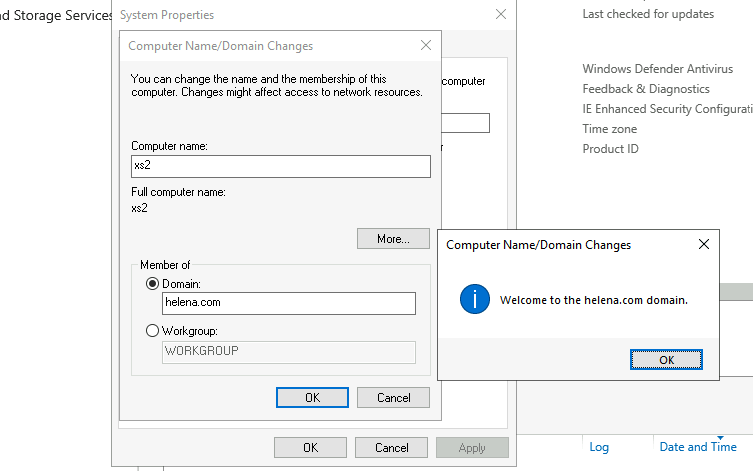 Song long the DNS is pointed to the domain controller, we can now join the domain from other PC in the network, which is XS2 here.