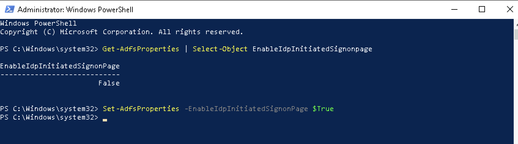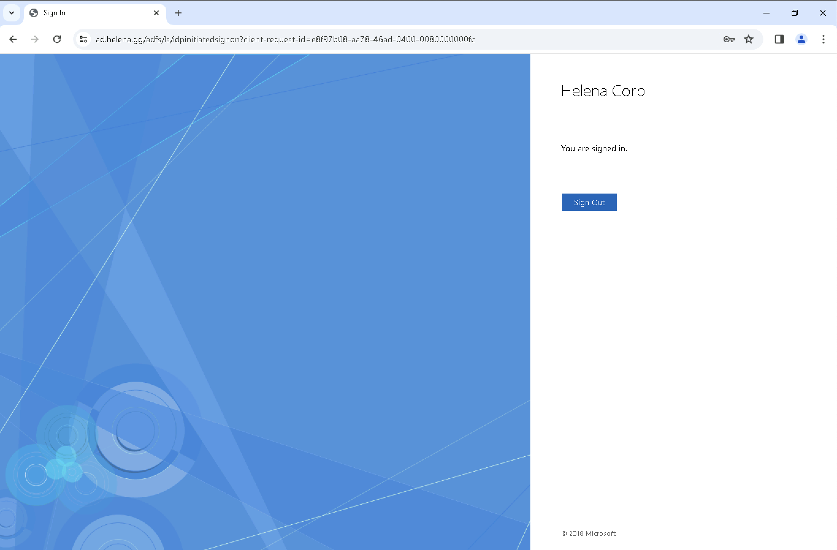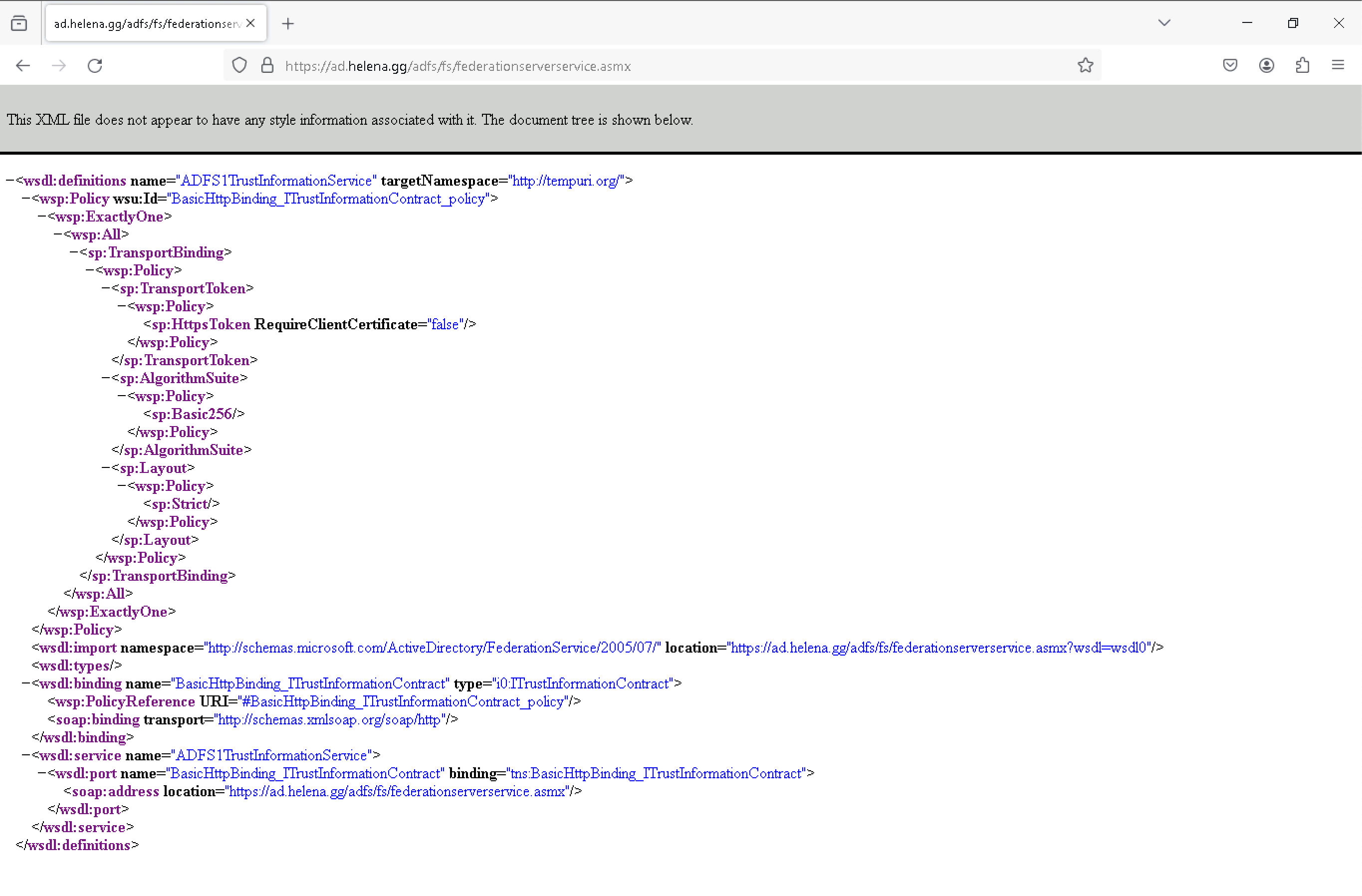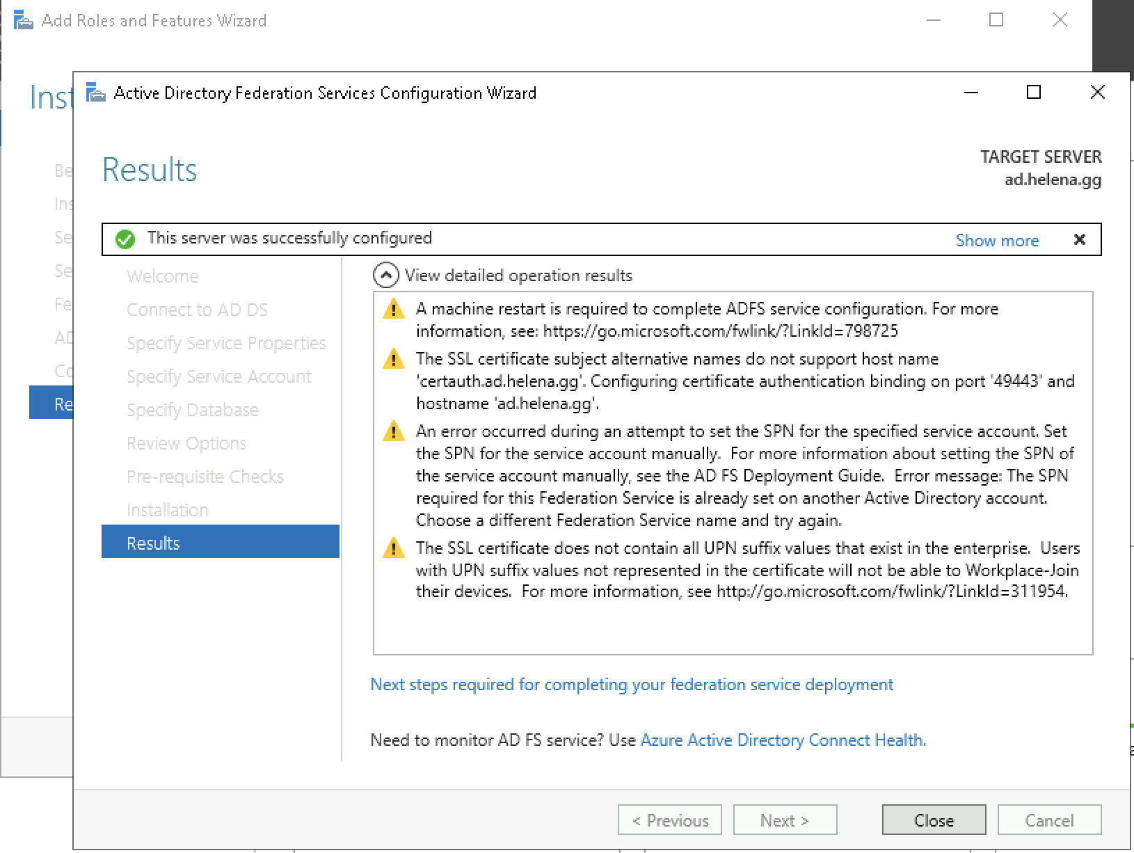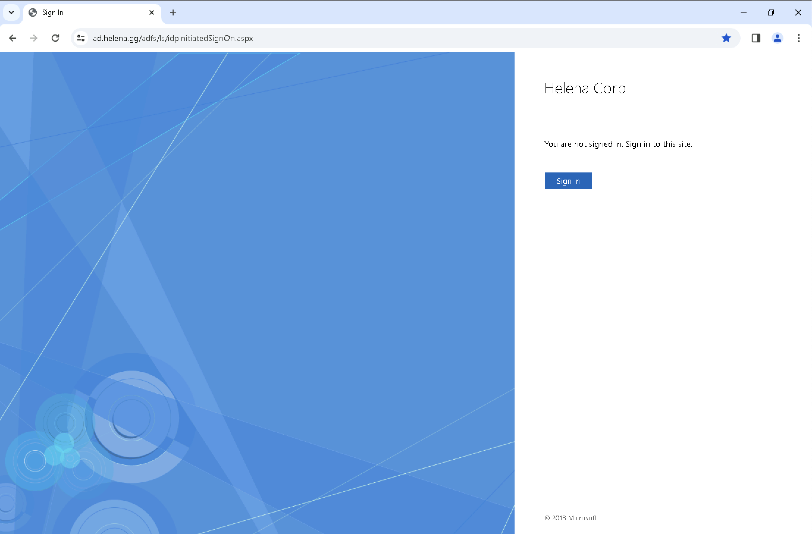 At this point, the adfs page should be up but with an error saying the resource is not available