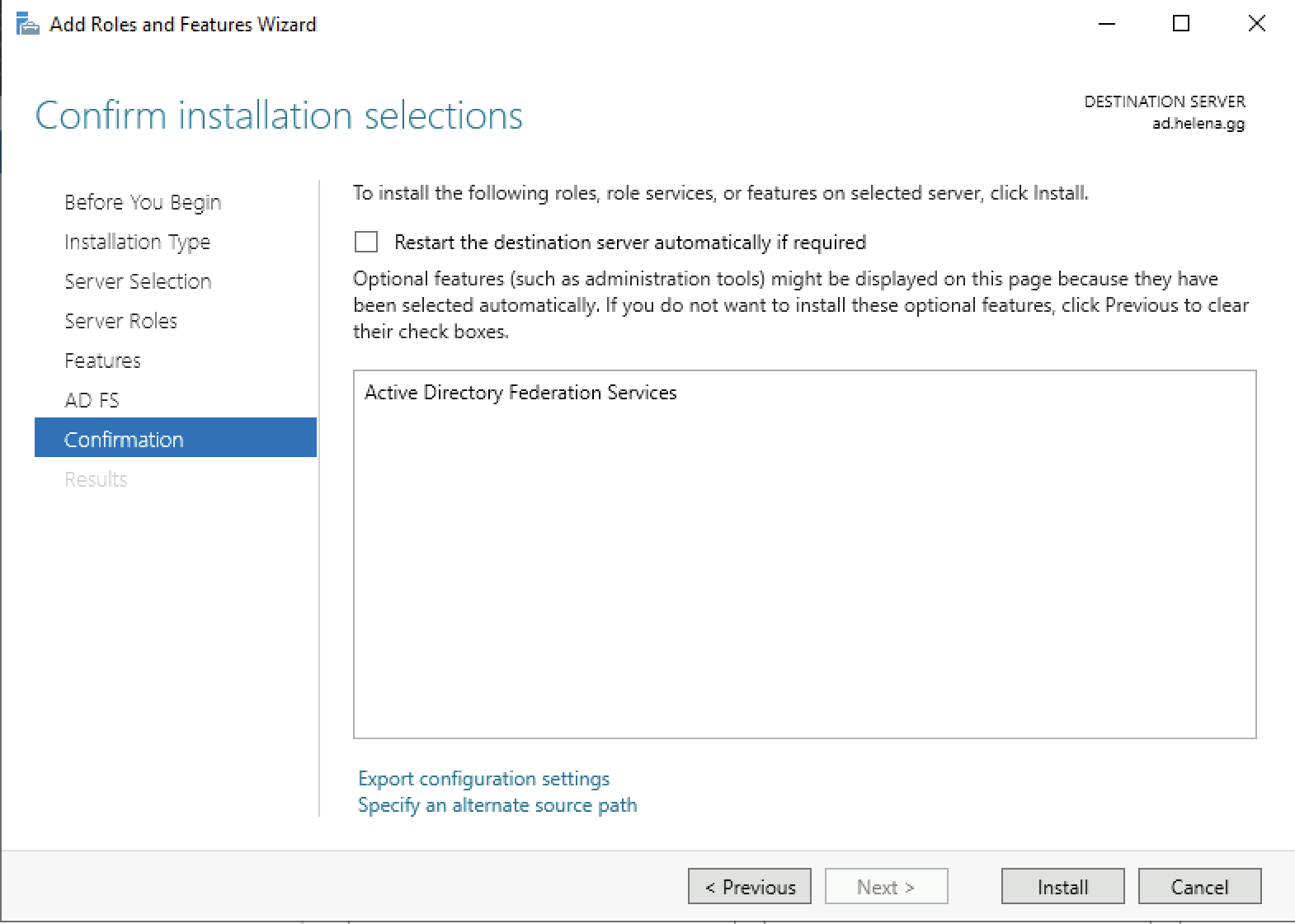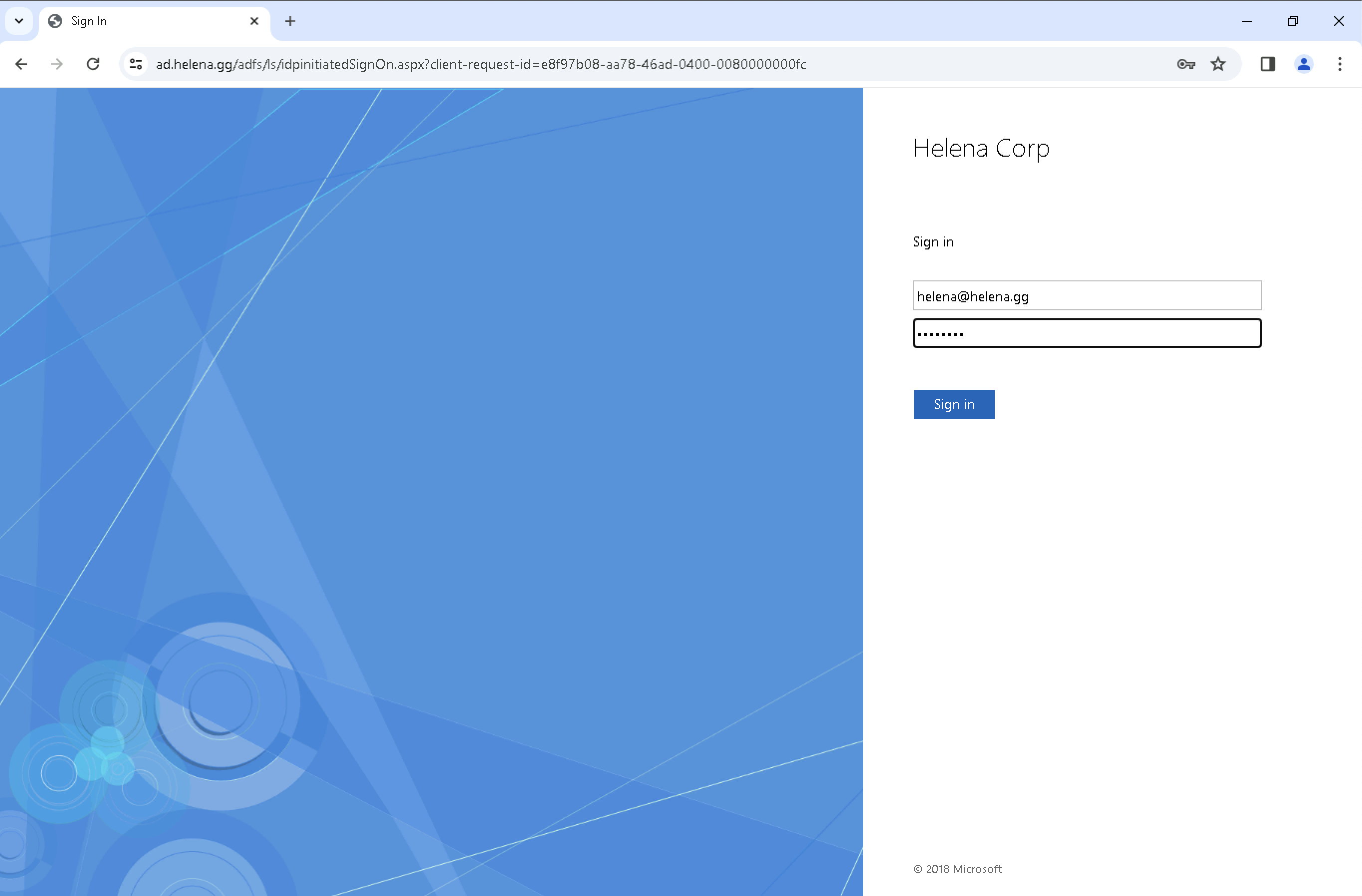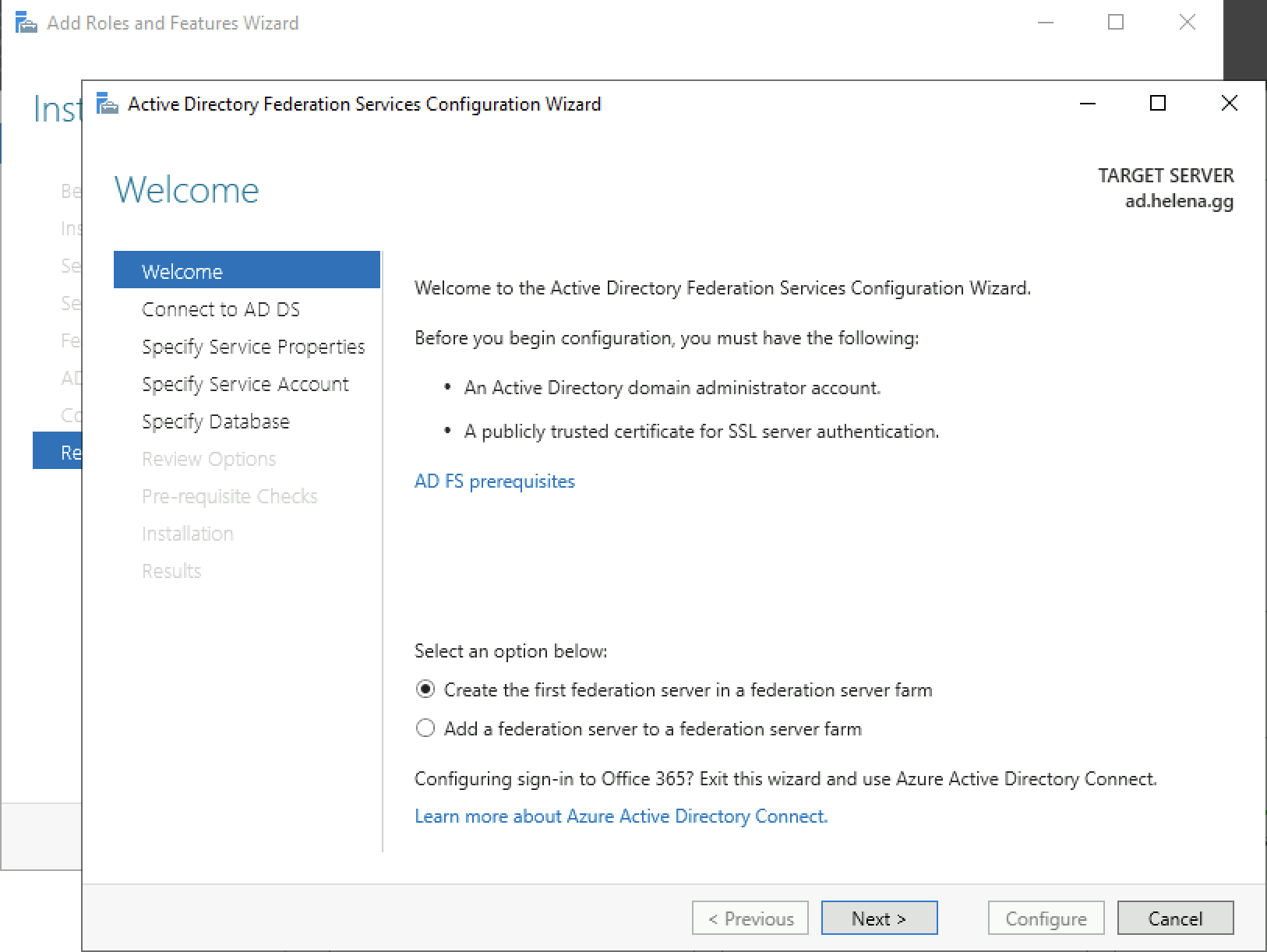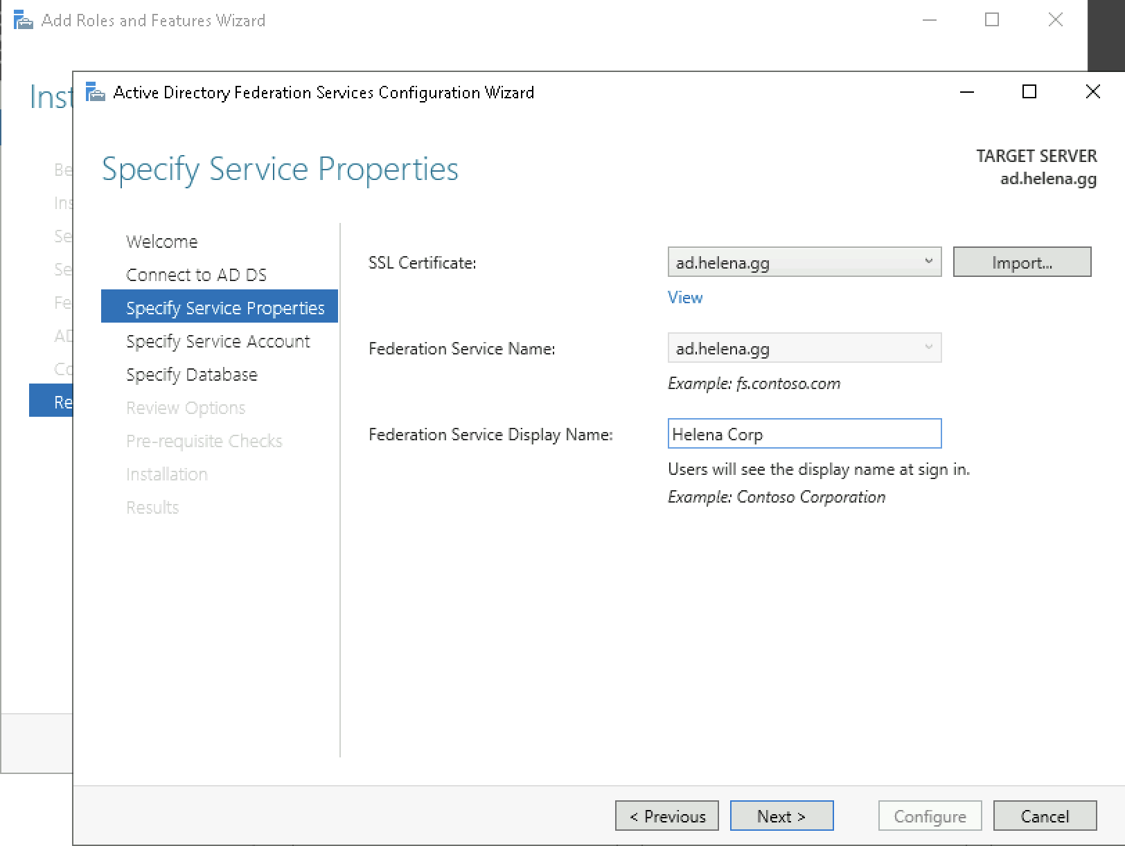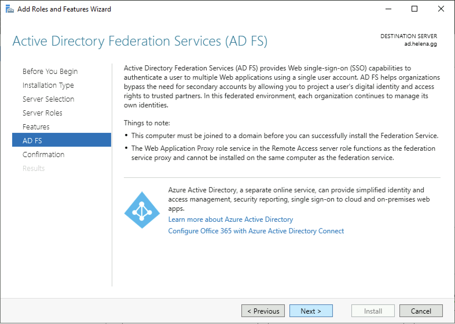 At this point, the adfs page should be up but with an error saying the resource is not available