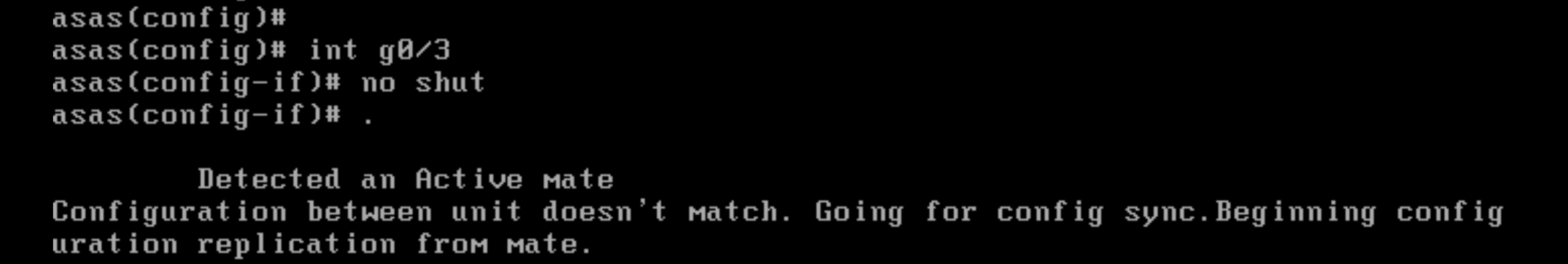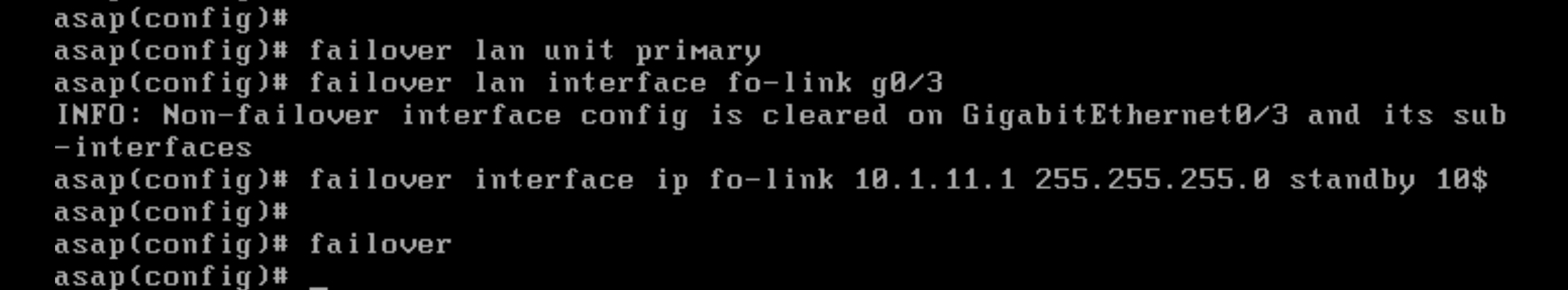 Next we add failover configuration, this command will use G0/3 interface as the HA link