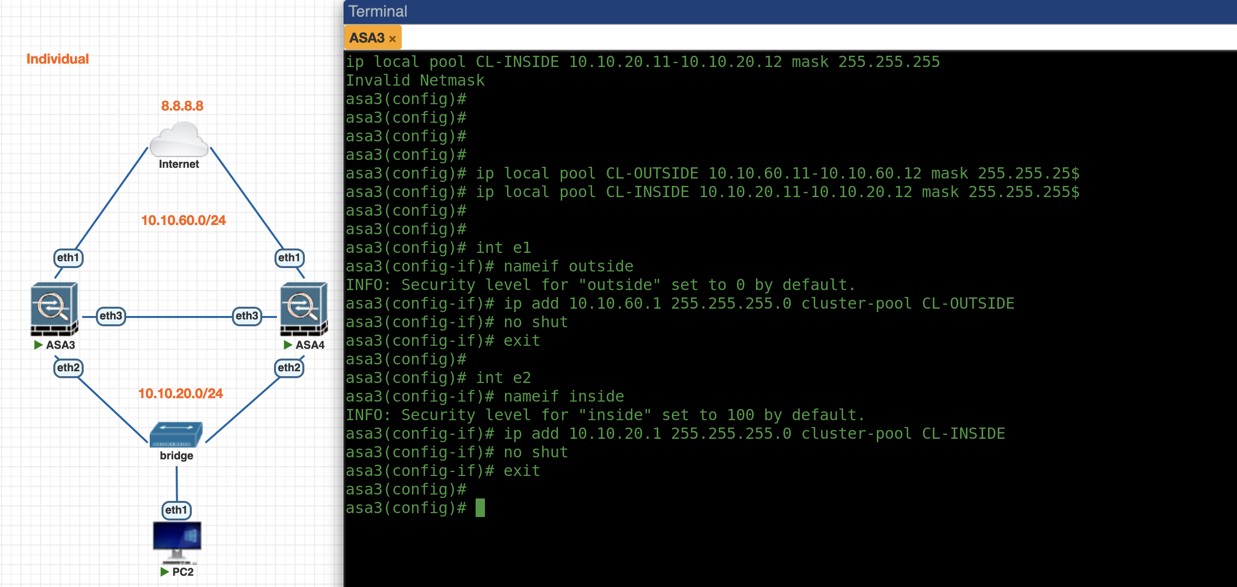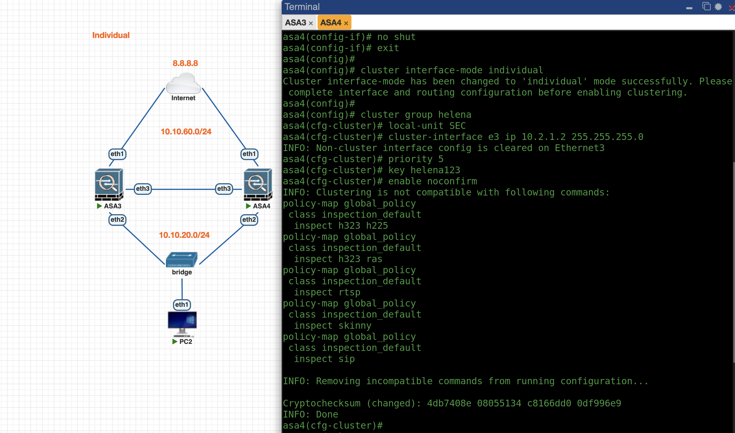 First lets enable Individual Mode Cluster on ASA3, the config is pretty much the same as previously
