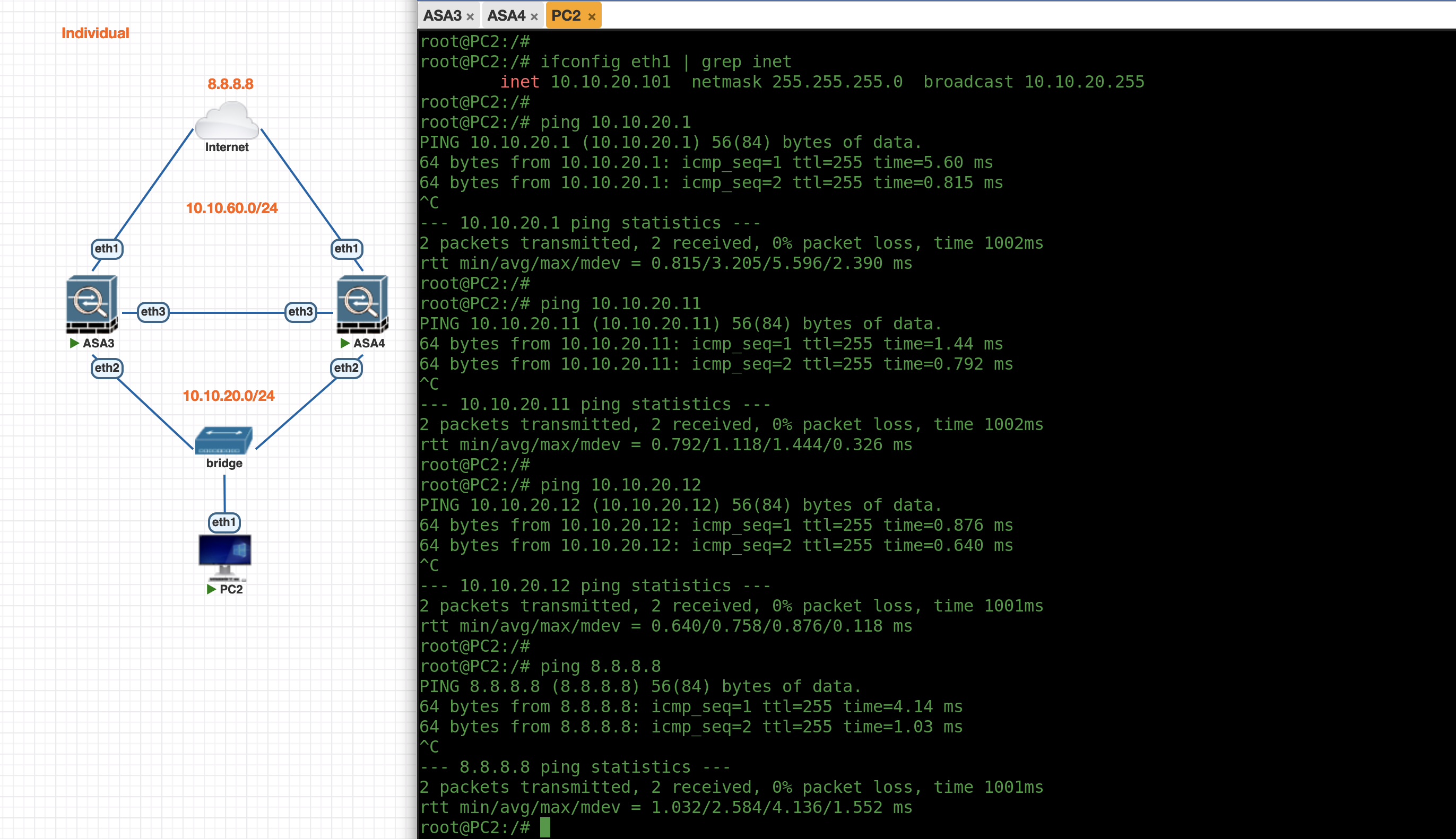 On the PC side, we can now ping the ASA as well as to access the internet