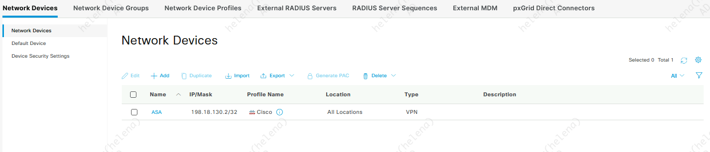 Then add the ASA as a Network Device that’s part of the VPN Device Group