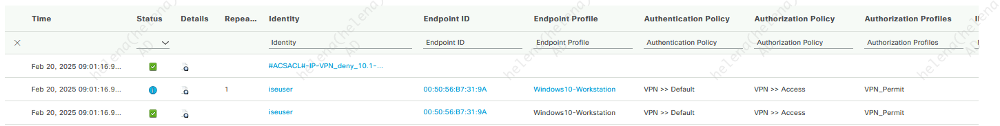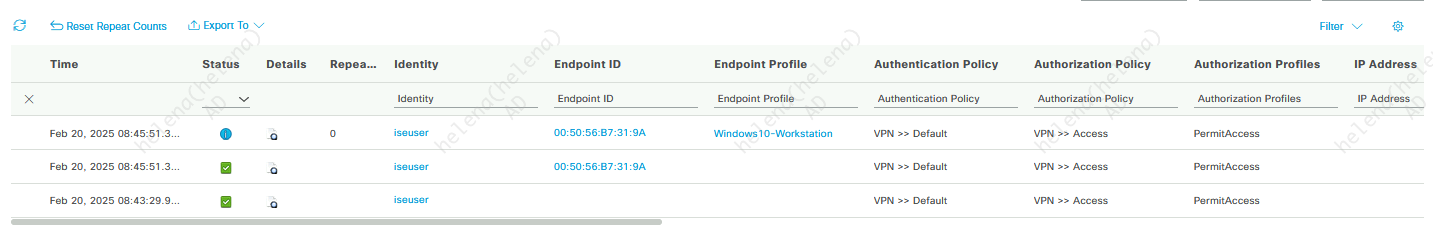 On ISE, we can see the Radius Logs of the VPN user authenticating