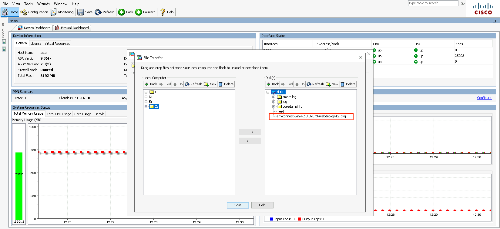 Then on ASDM, go to Tools » File Management, upload the package to the disk0:, then close the window.