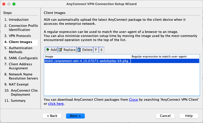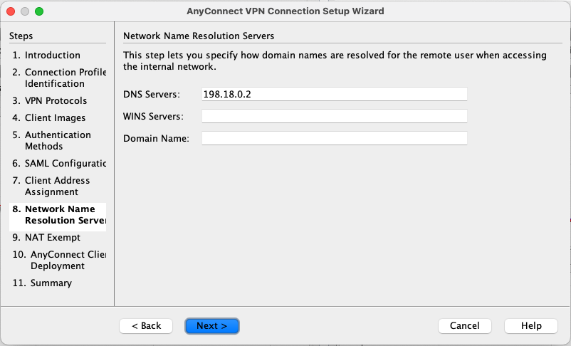 Now we configure the VPN configuration, go to Wizards » VPN Wizards » Anyconnect VPN Wizard