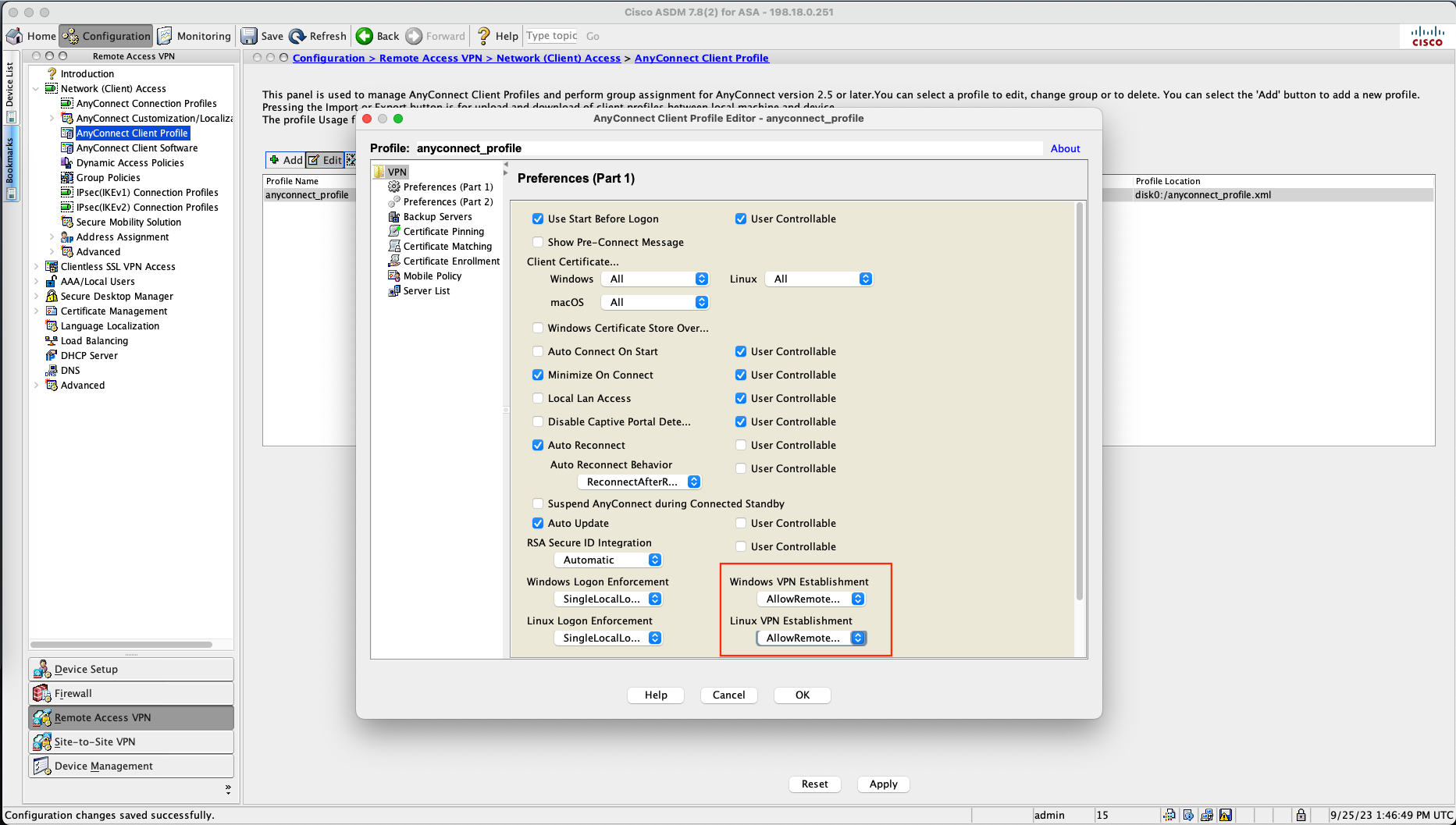 Select the profile and click edit, On VPN Establishment select AllowRemoteUsers
