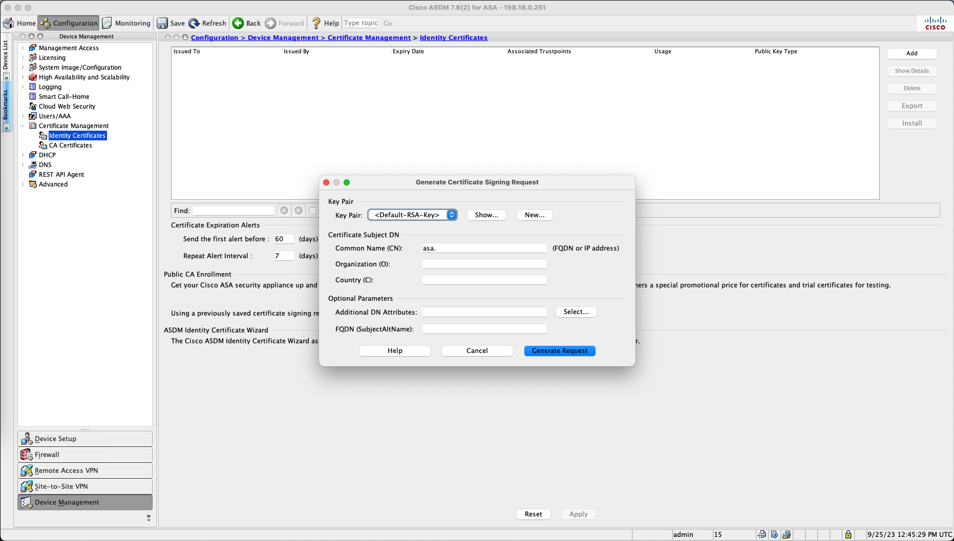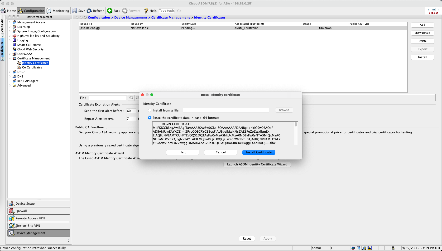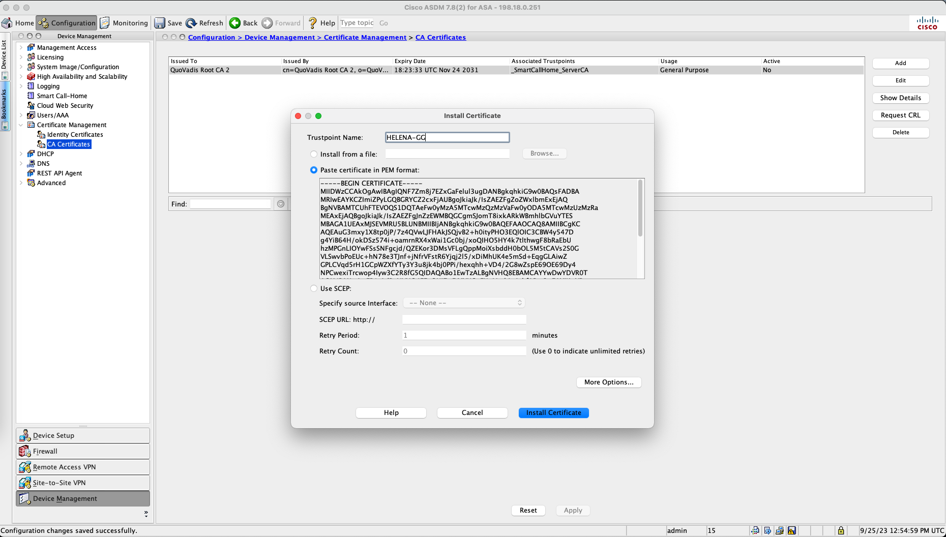 First, lets update the certificate on ASA using CA Signed Certificate.