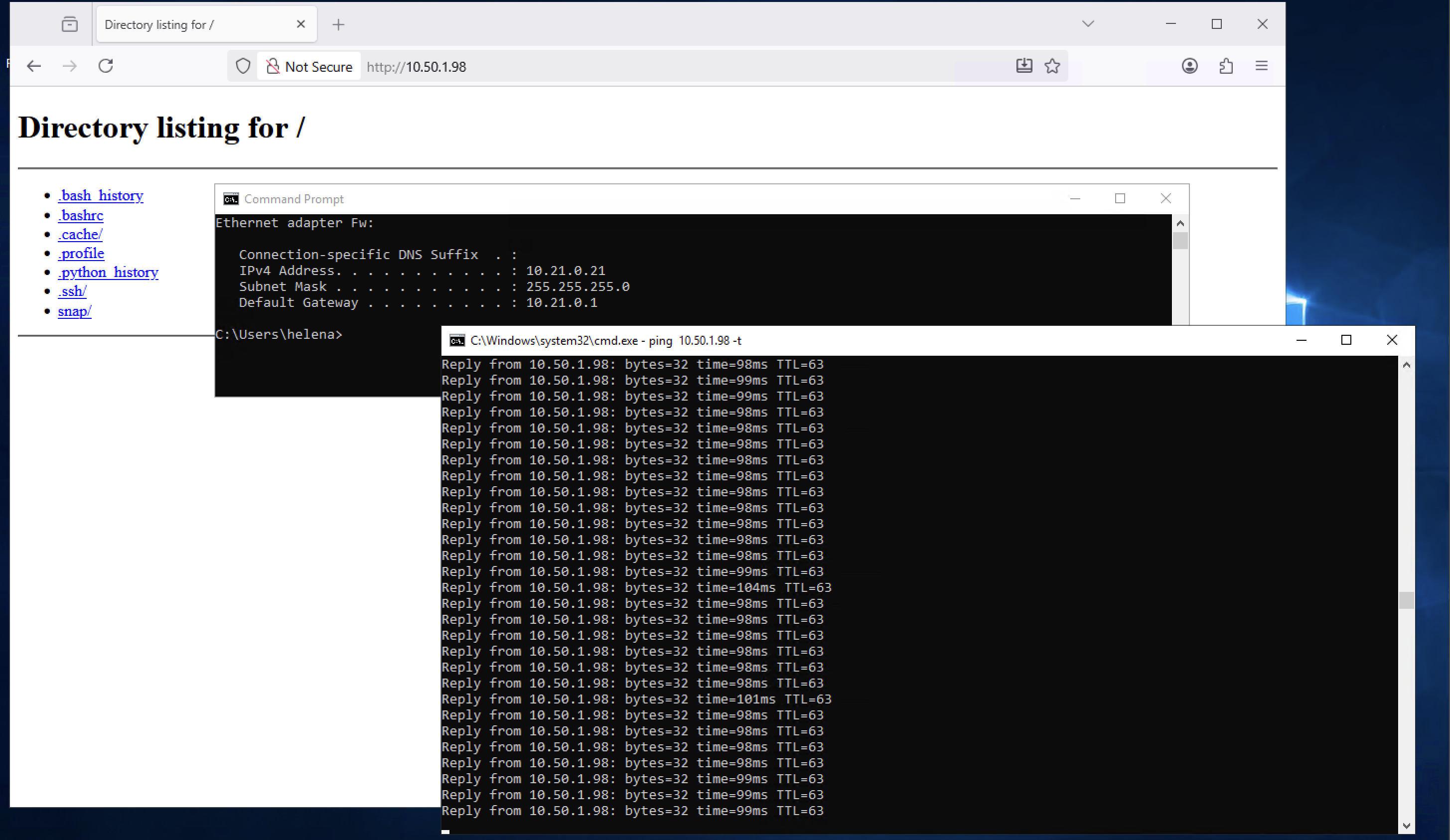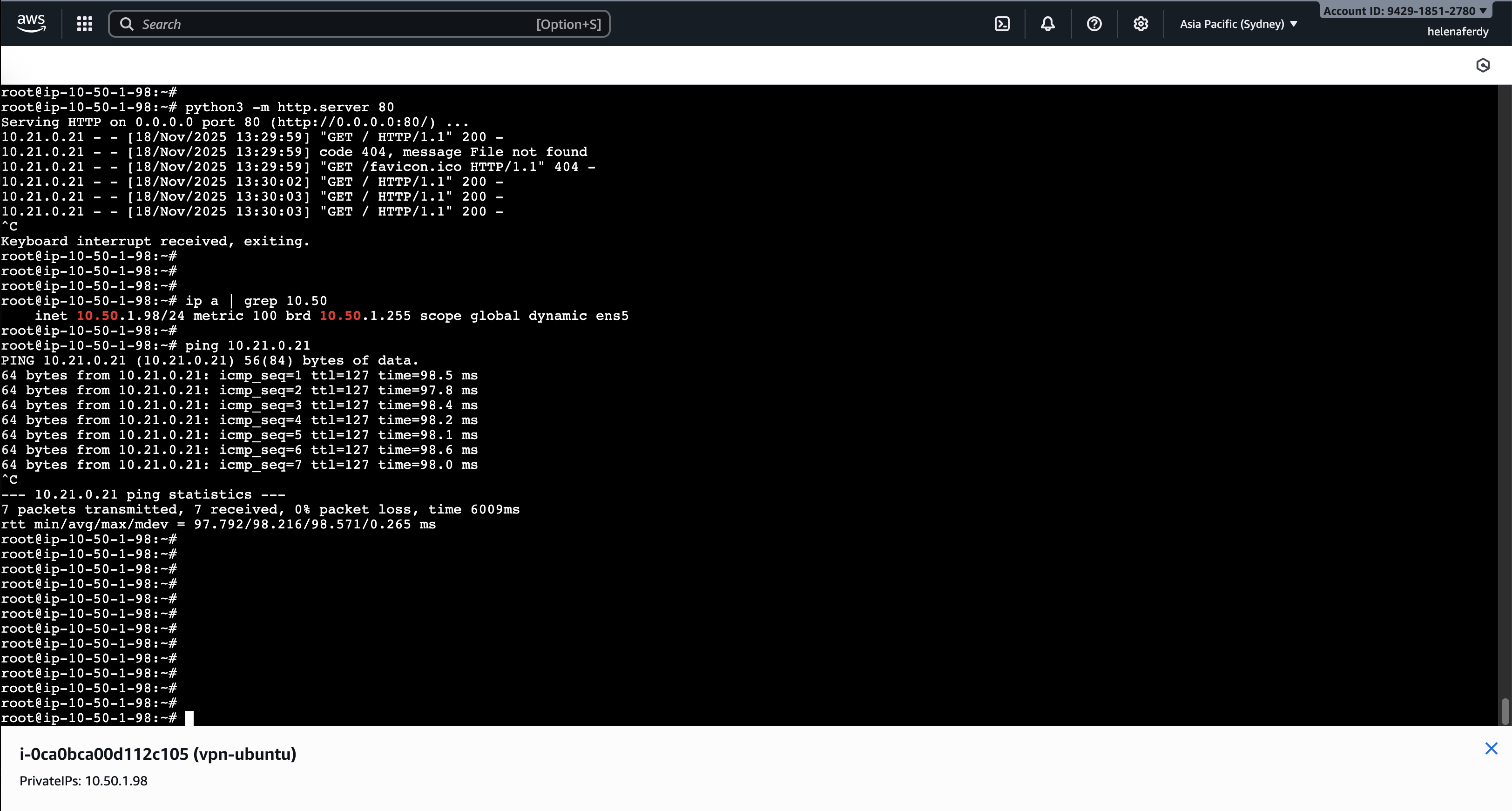 To test the traffic, here a host on 10.21.0.21 is able to reach the host on 10.50.1.98