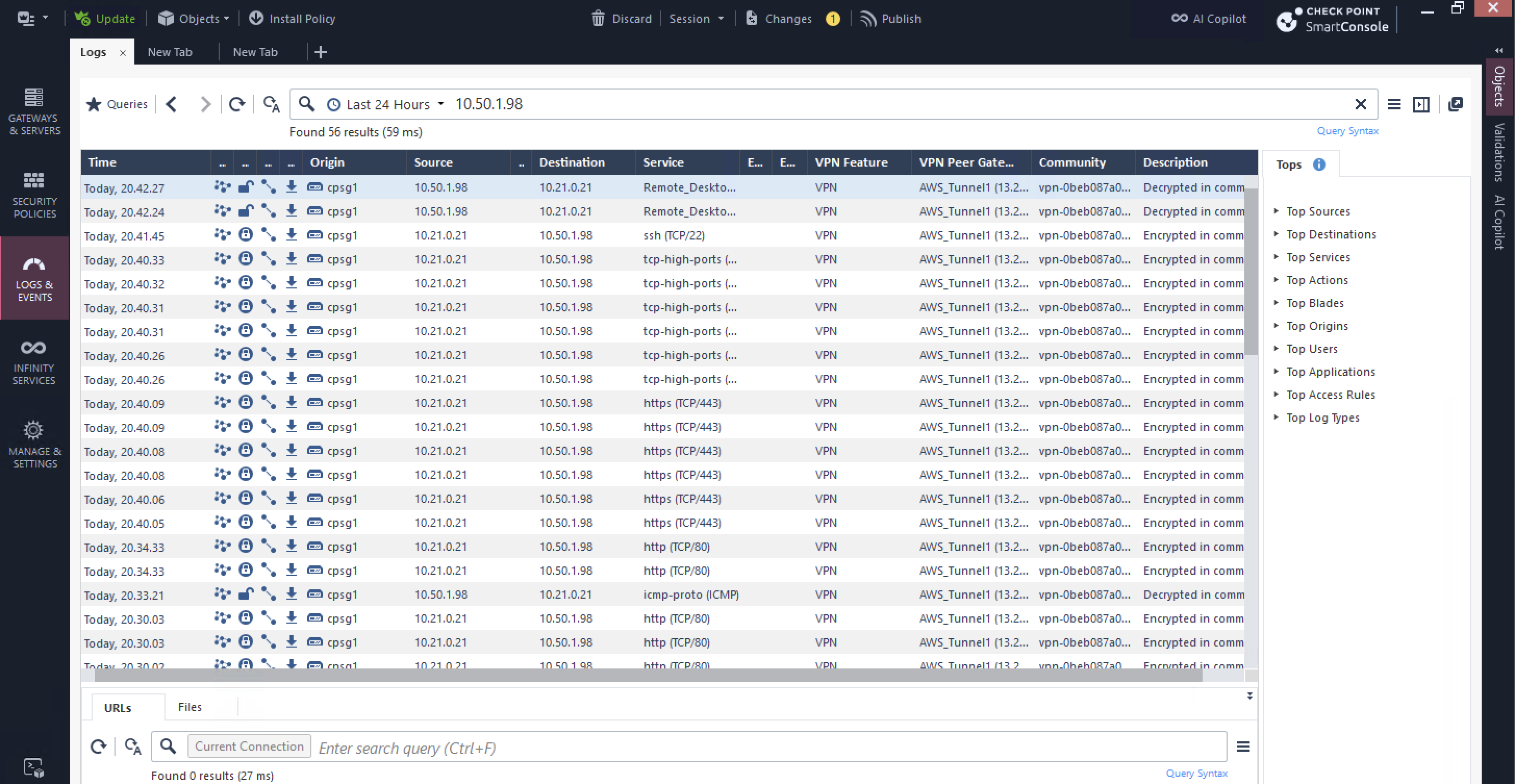 On Check Point, we can see the logs for traffic going back and forth between these 2 hosts