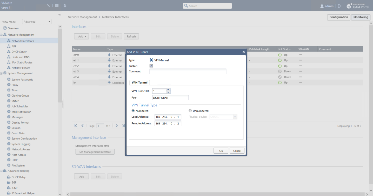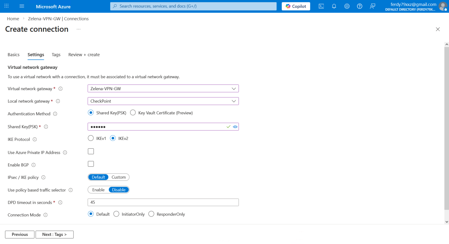 Next we bind the VPN Gateway and the Local Gateway and configure the tunnel parameters