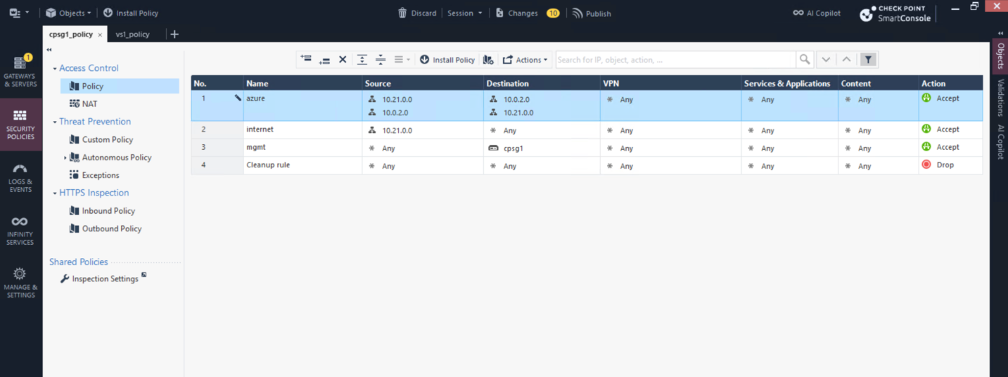 The traffic is logged on our CP side verifying that the VPN connection is up and able to connect the 2 networks