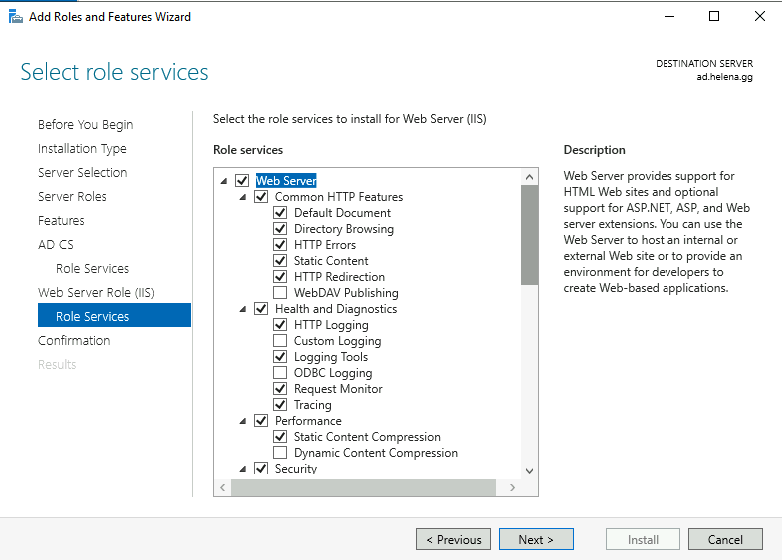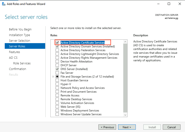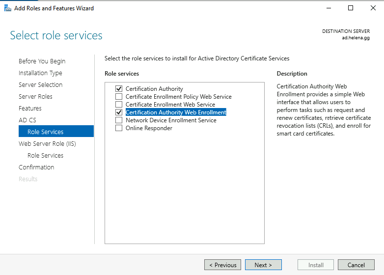 On role, select Certiticate Authority and Certiticate Authority Web Enrollment