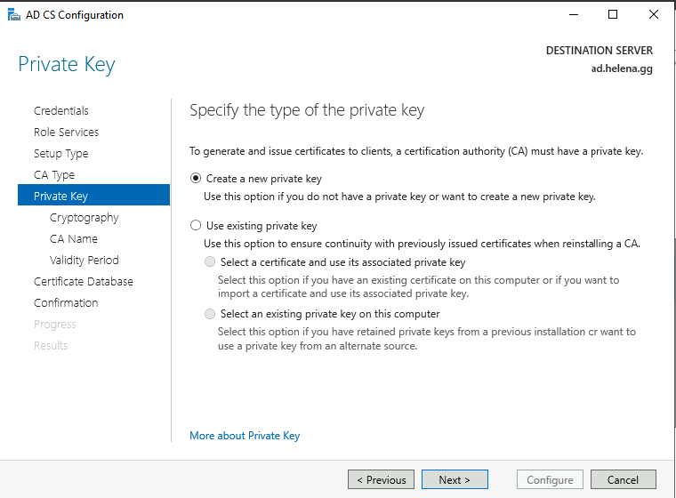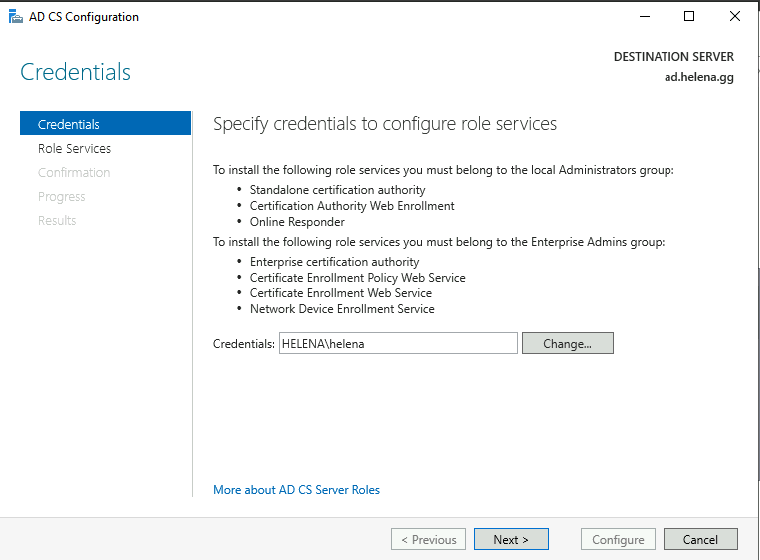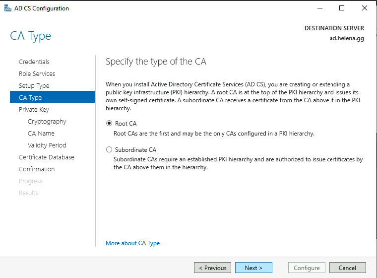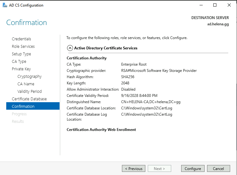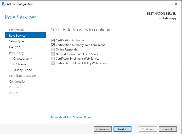 After it finishes, select Configure Active Directory Certificate Services on Desination Server