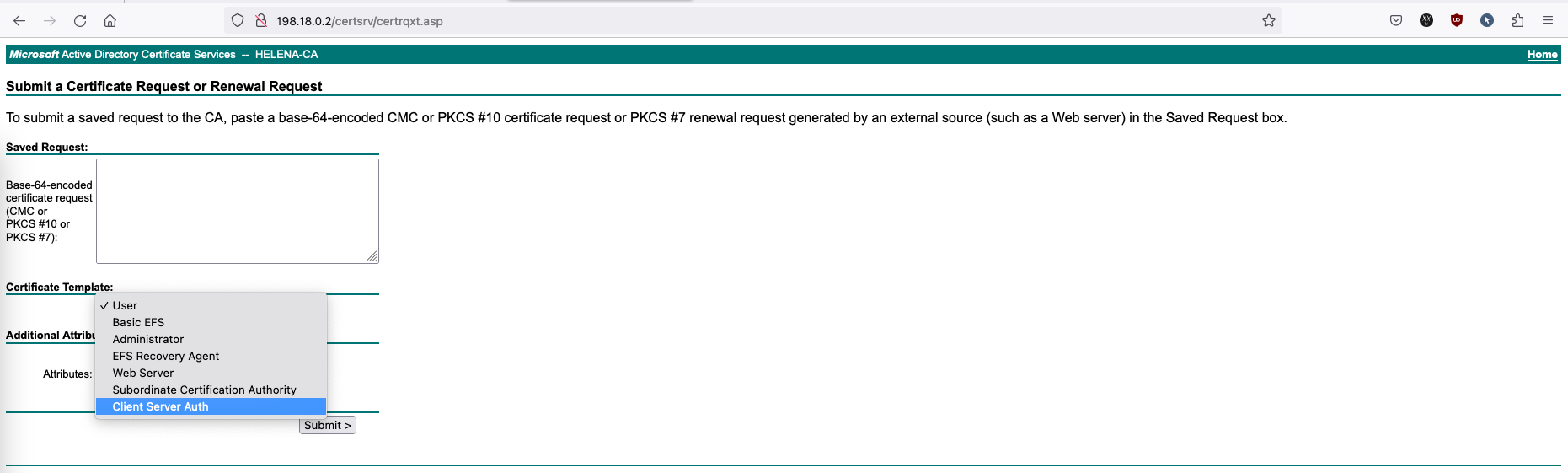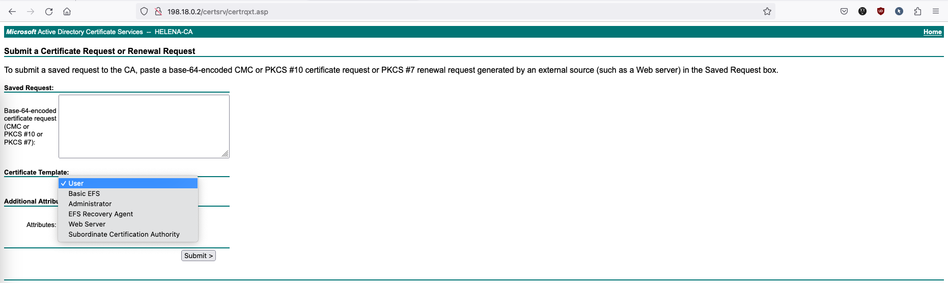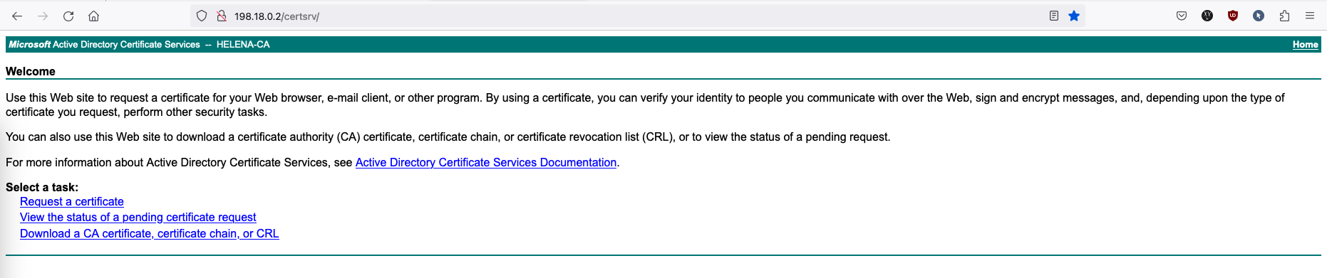 And if we access the CA’s IP on web browser, we should see the CA Web Enrollment page