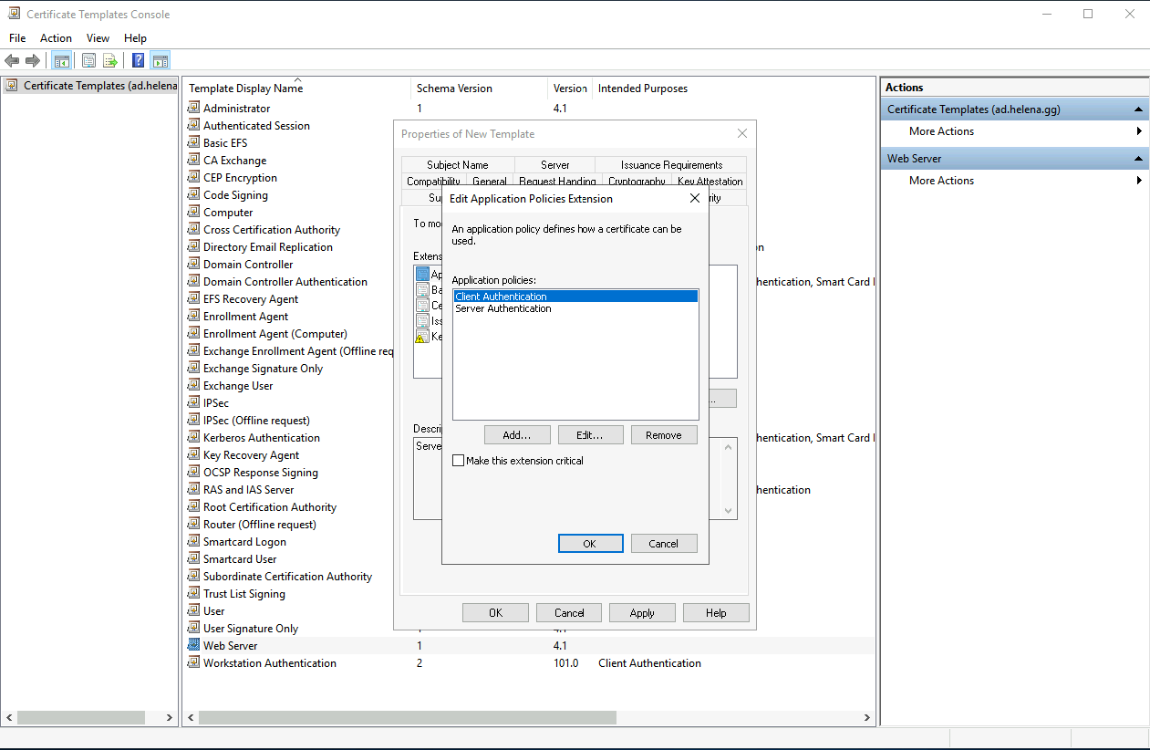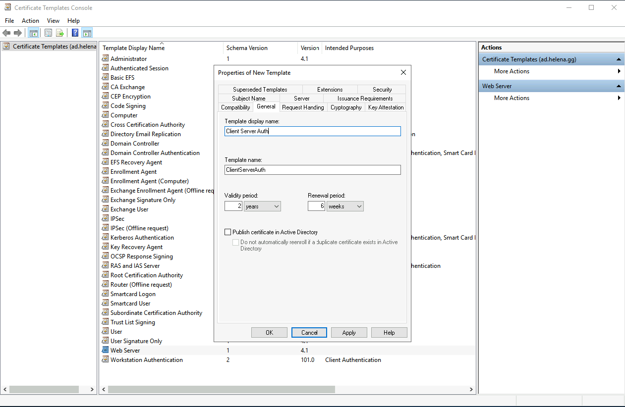 But some app requires different kind of template, for example Cisco Expressway and Cisco Meeting Server (CMS) require certificate that allow both Server Authentication and Client Authentication, so lets create the template for that case.