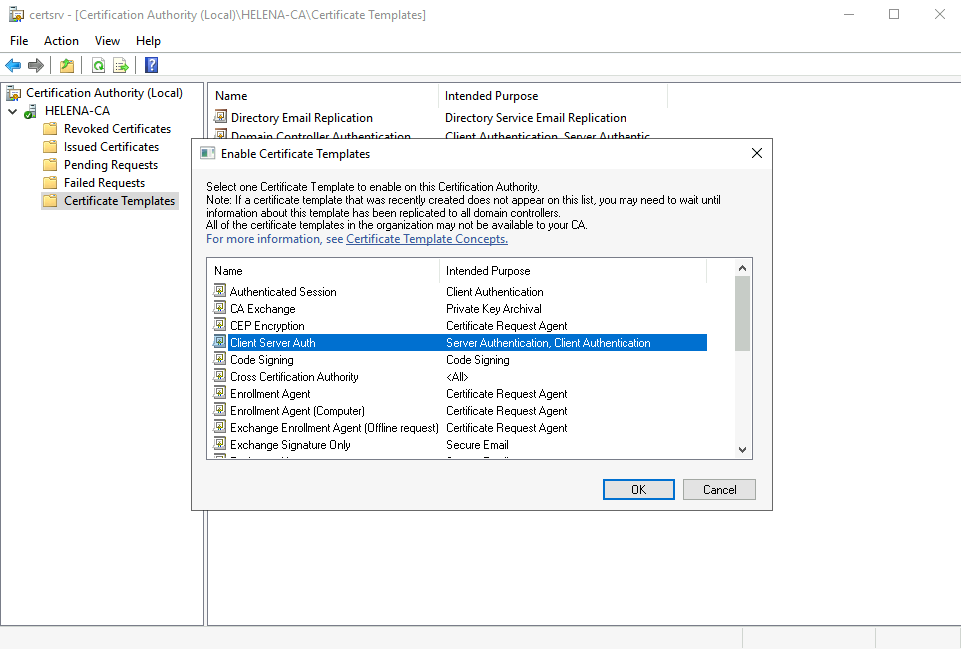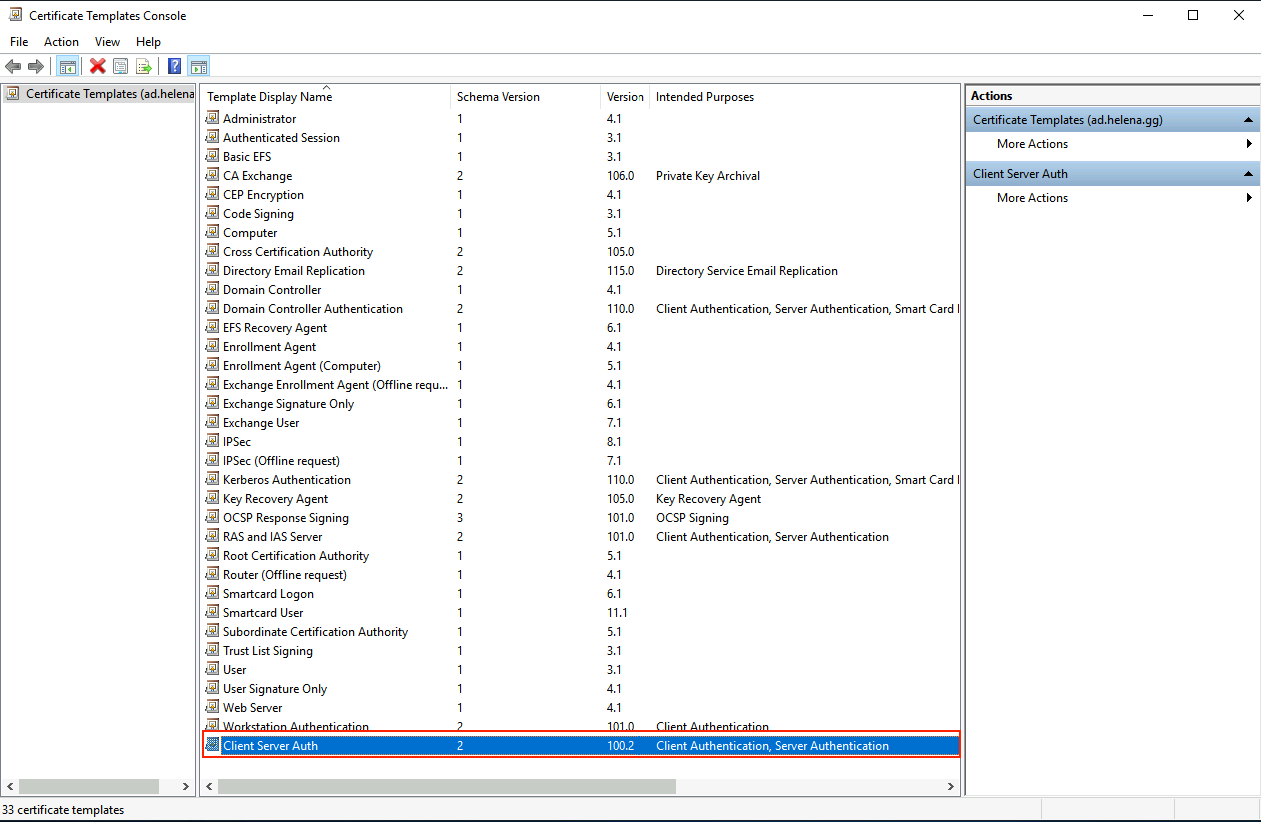By default, the CA only offers 5 certificate templates, which is enough if all we need is this CA to only sign normal web servers.