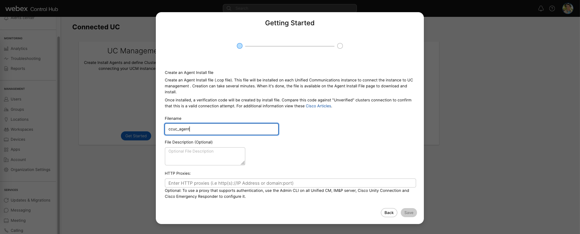 Then we’ll create Agent COP file that we will install on our on-prem CUCM deployment. Click Get started.