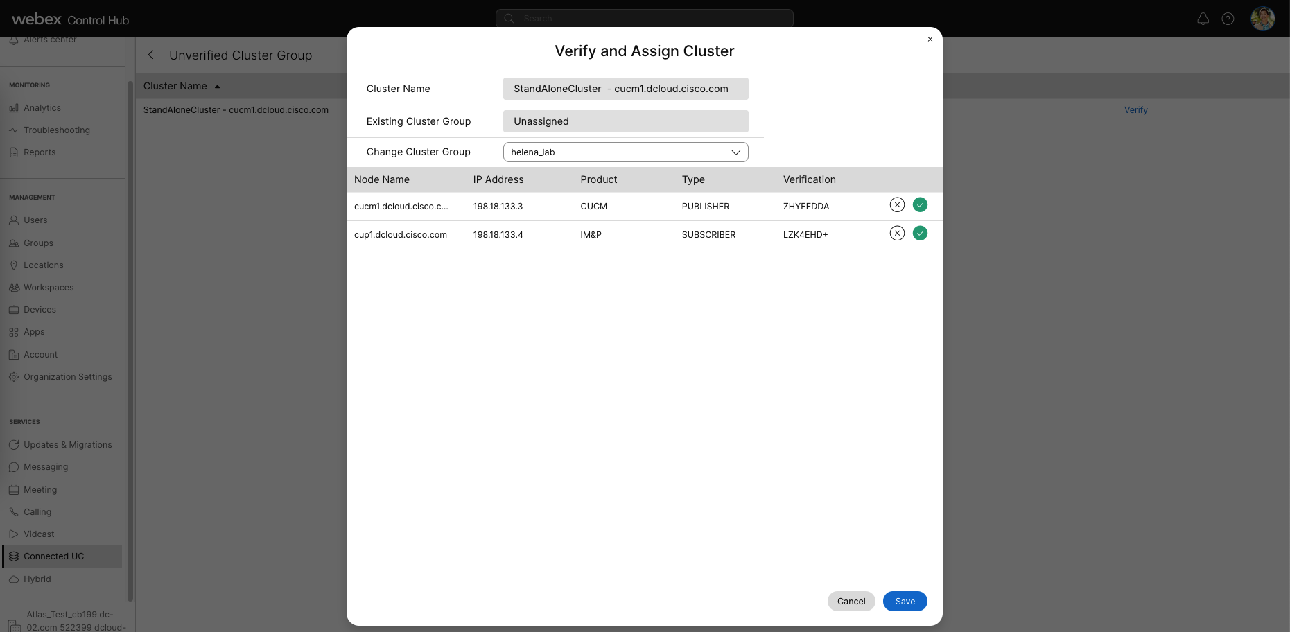 Go to Connected UC » Inventory, we should see an Unassigned group containing 2 nodes. Click resolve