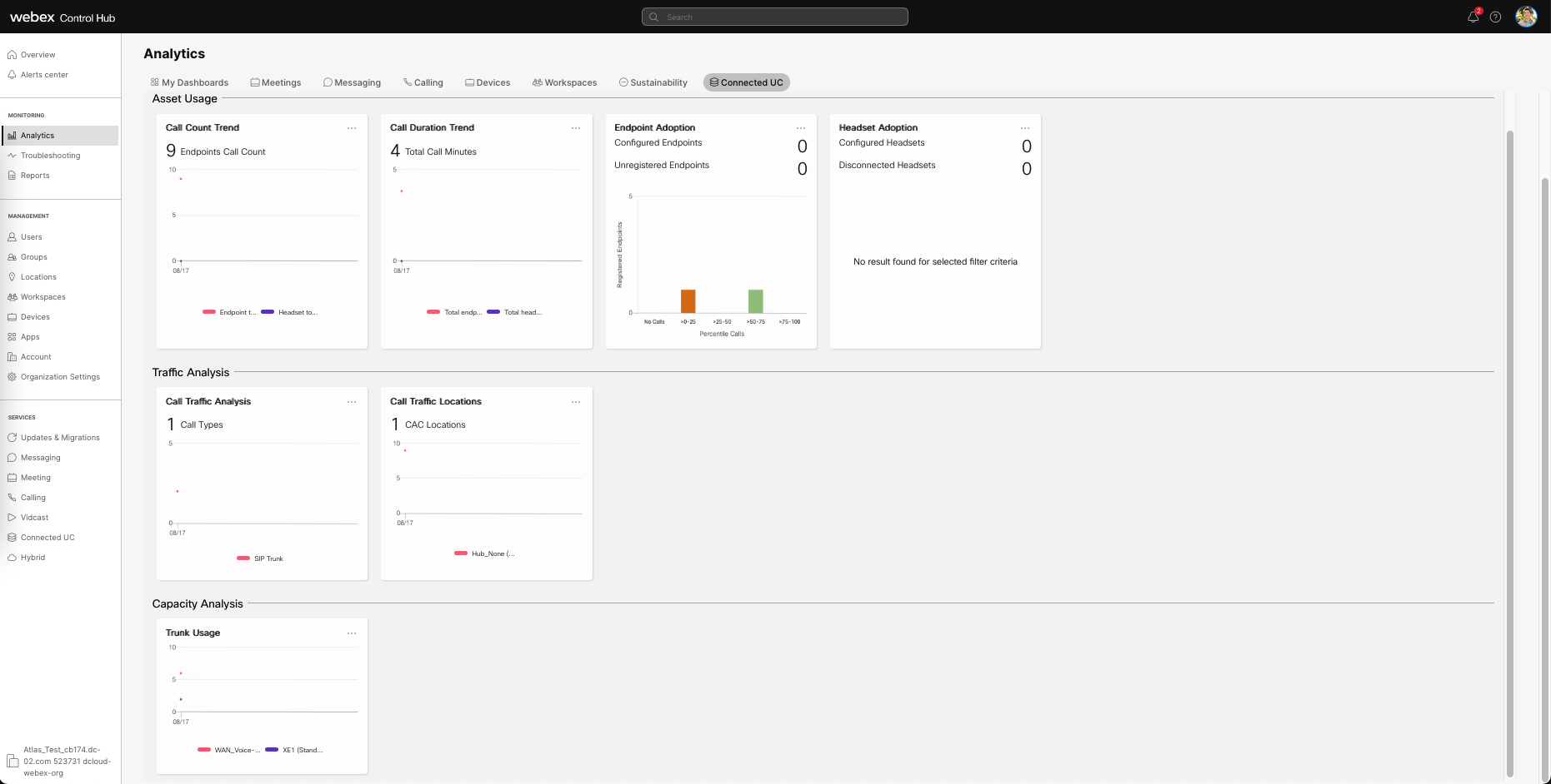 Now that everything is set up, give it couple hours until the data shows up on Webex Control Hub.