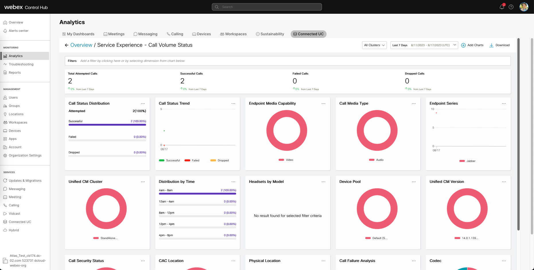 Once it does, we’ll be able to see it on Analytics » Connected UC