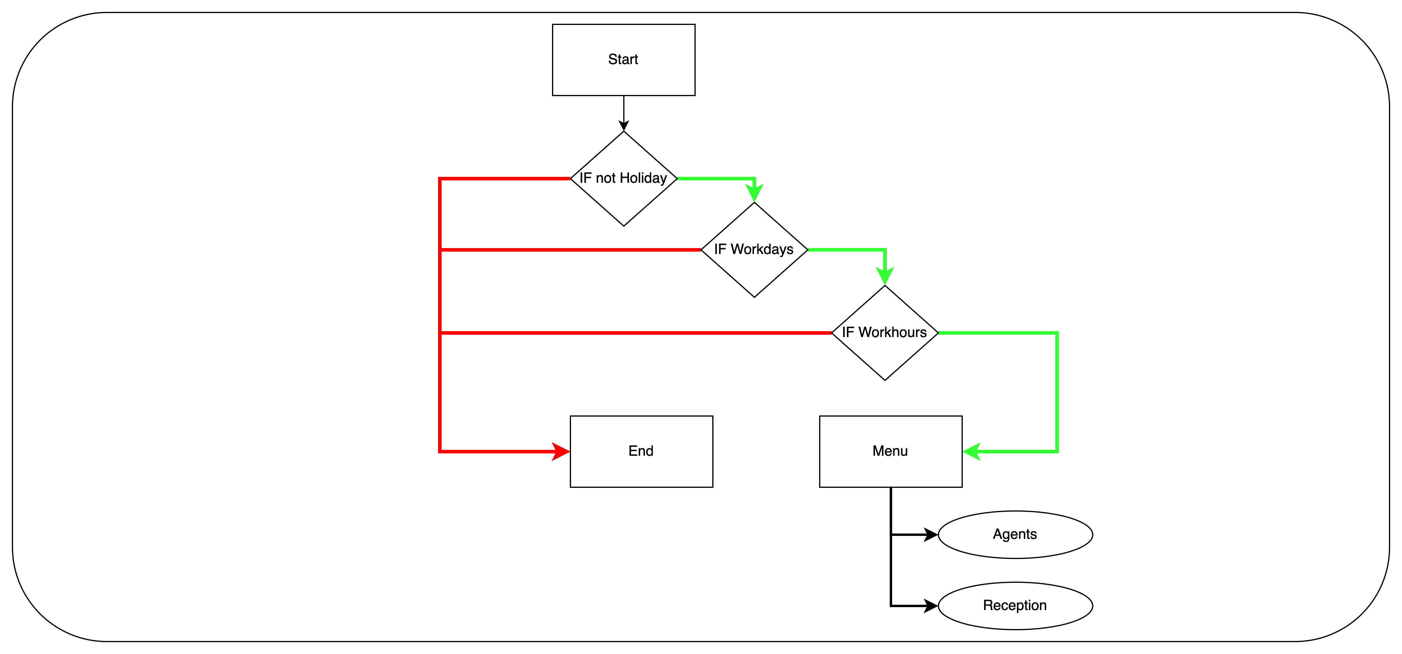 Then add a Queue loop for when there’s no agents available so the caller can wait with a music played