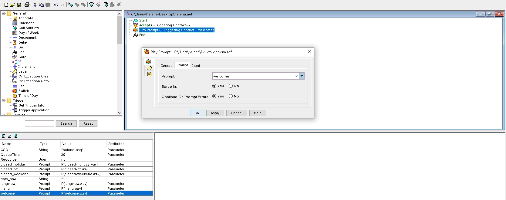 First after creating a new script, add a Play Prompt as the first audio interaction pointing to welcome.wav