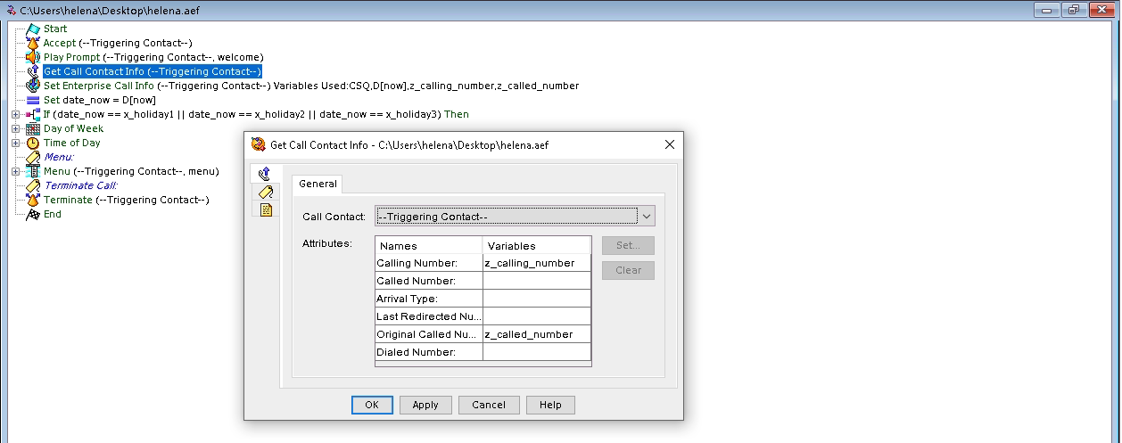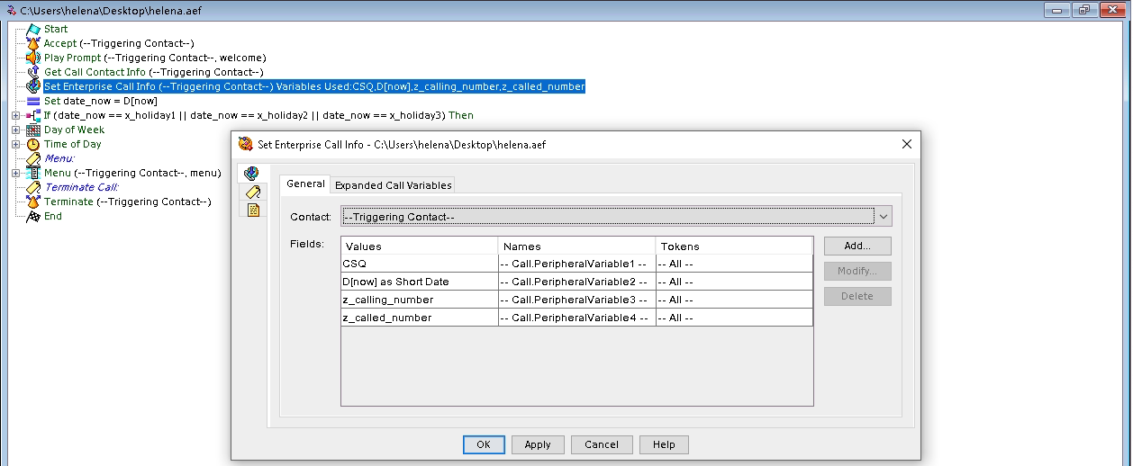 Additionally, if we want to utilize some call data and display it on the Finesse as a call variable, we can add a Get Contact Info element and store these data on some variables