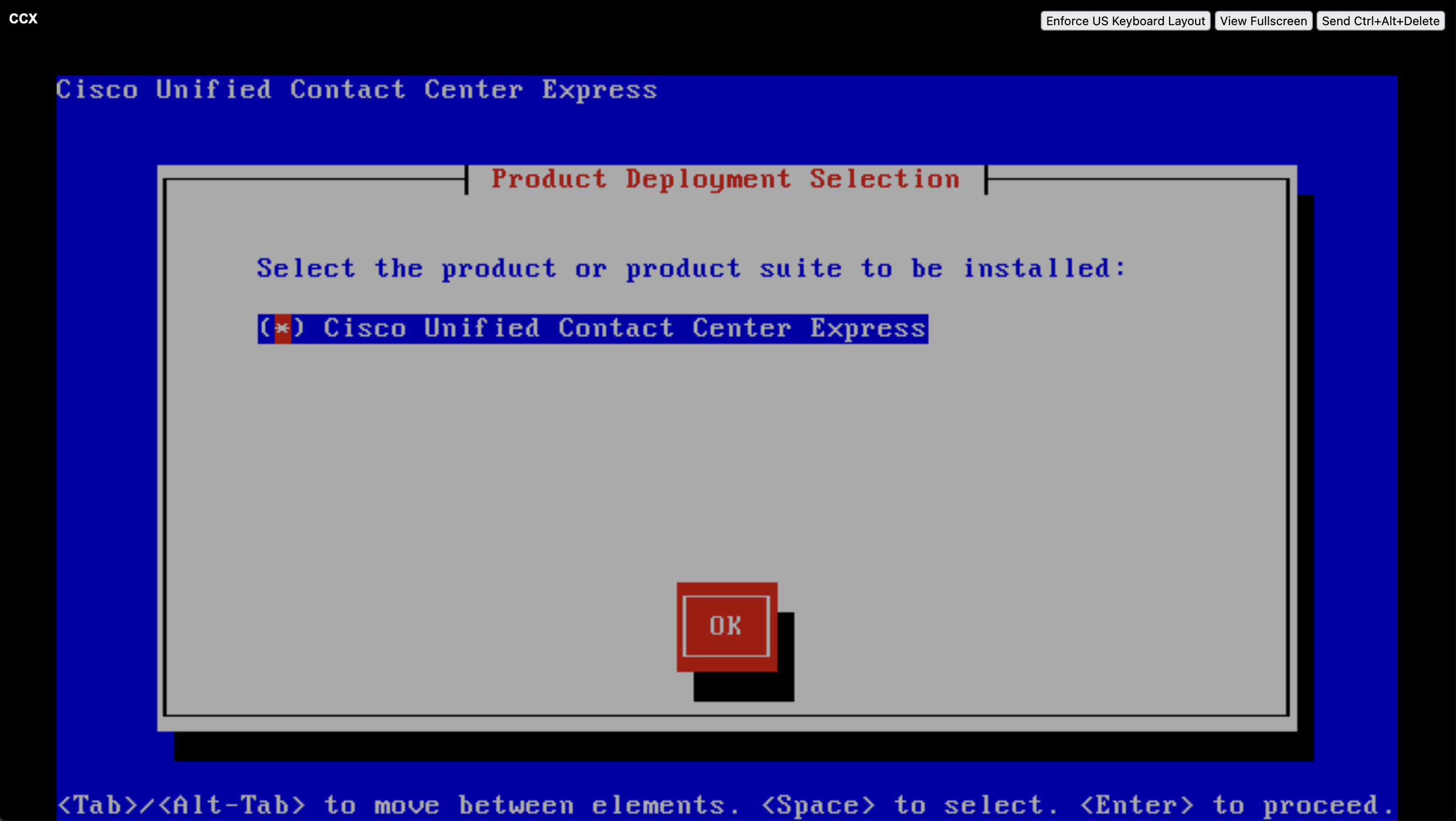 After the server rebooted, we should be able to access the CCX main menu
