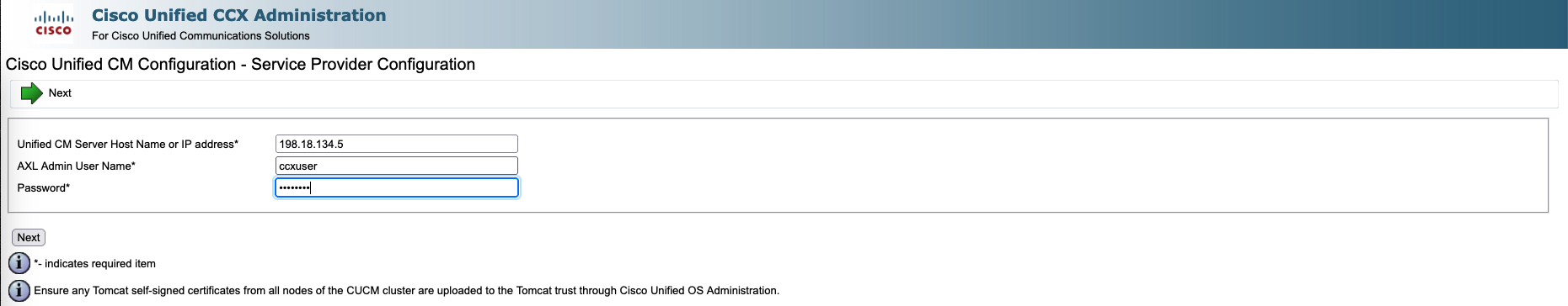 Next select the AXL provider, since we only have one CUCM so just select the one available