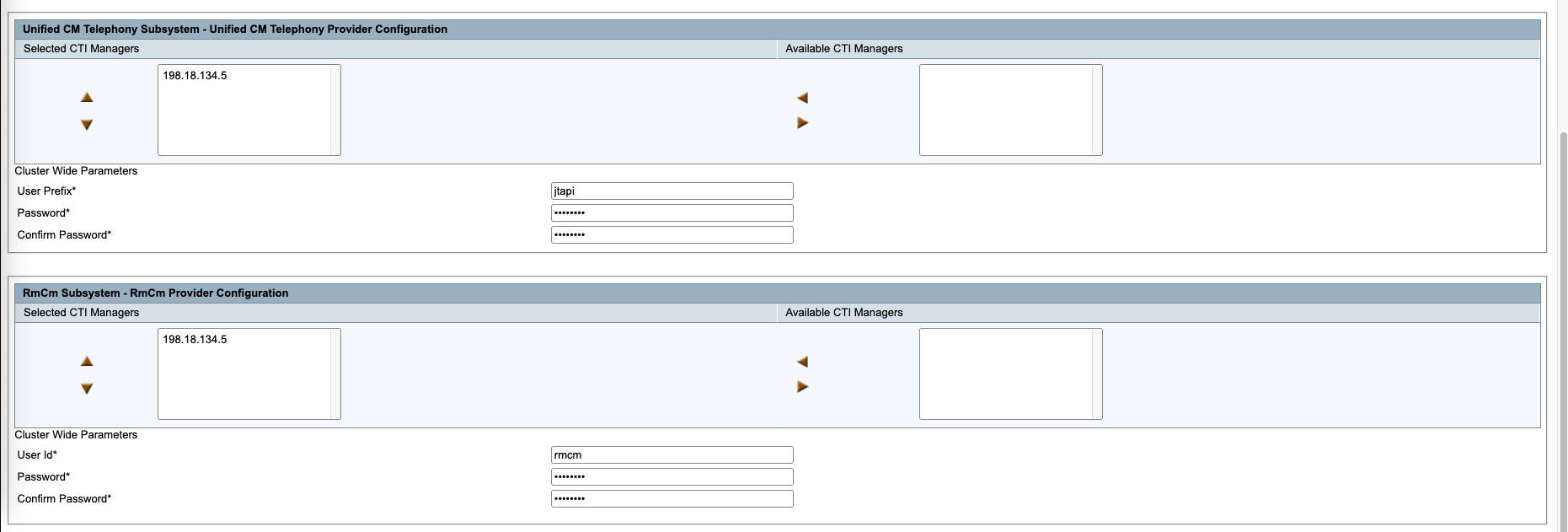 Configure the JTAPI and RMCM integration to CUCM