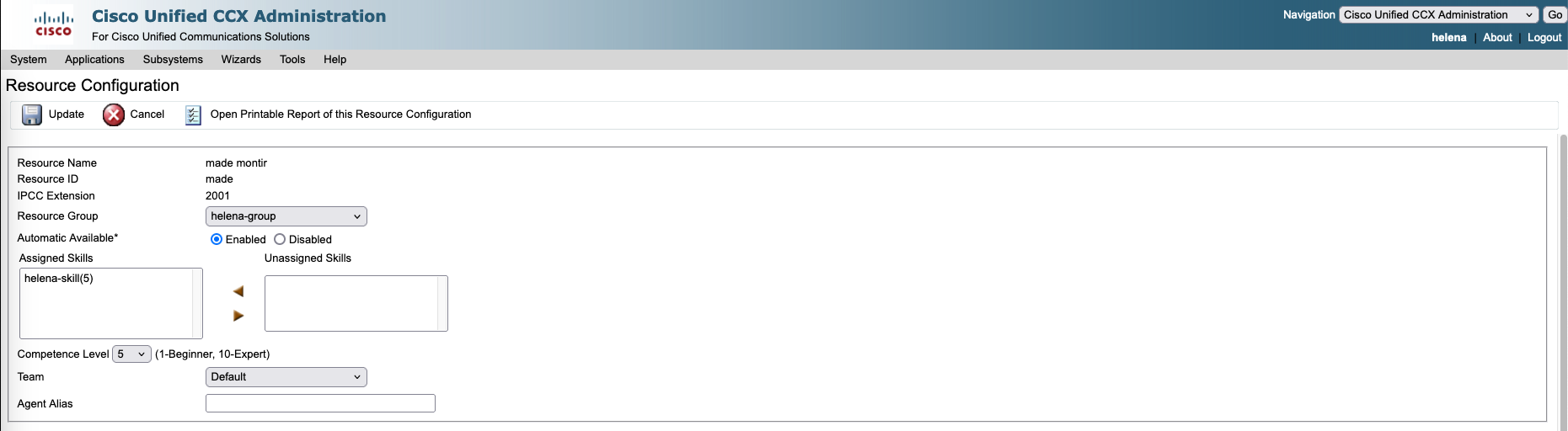 Then on Subsystem » RmCM » Skills, create new Skill to be assigned to the resources