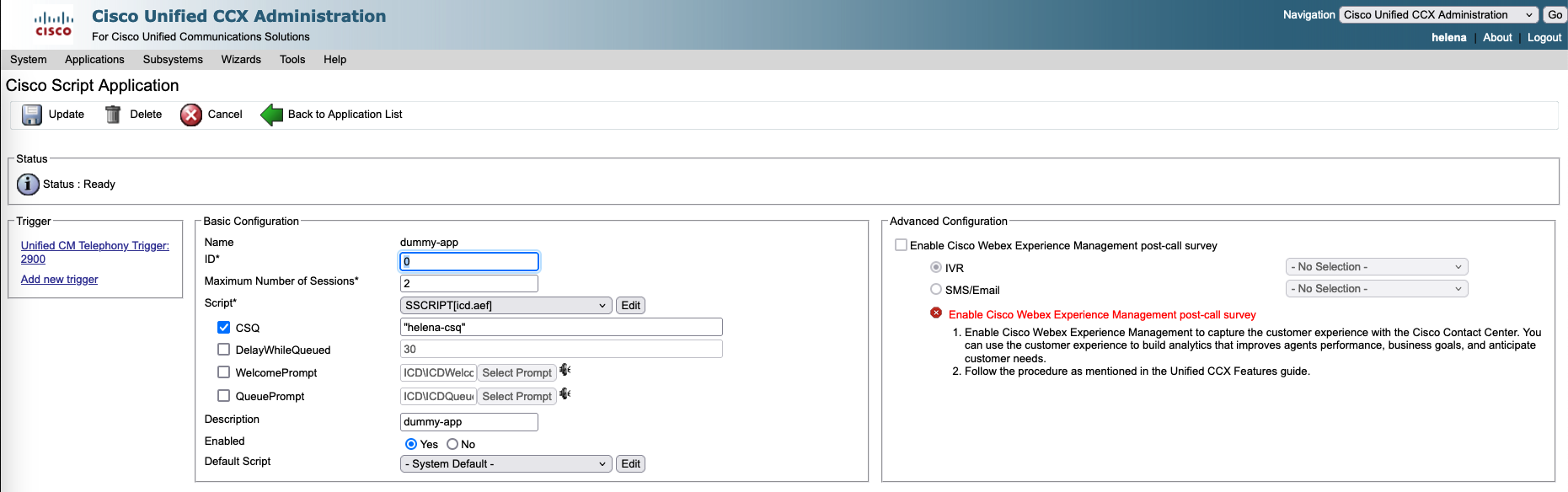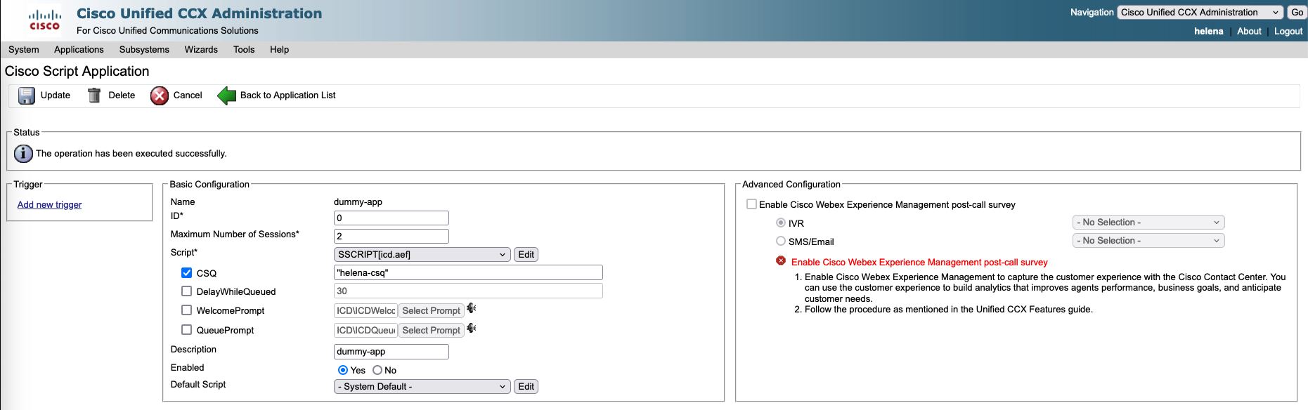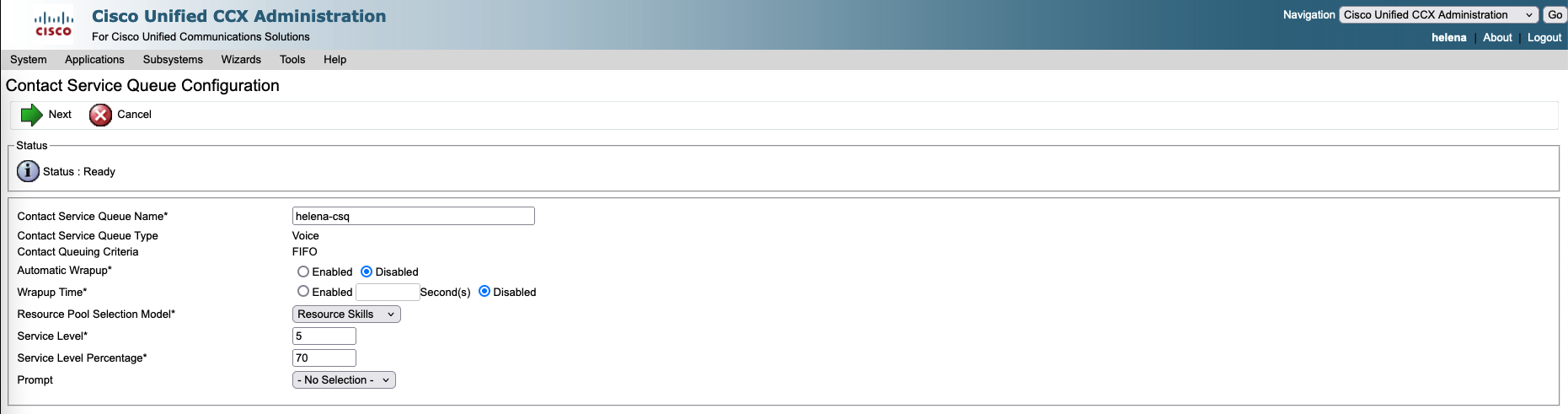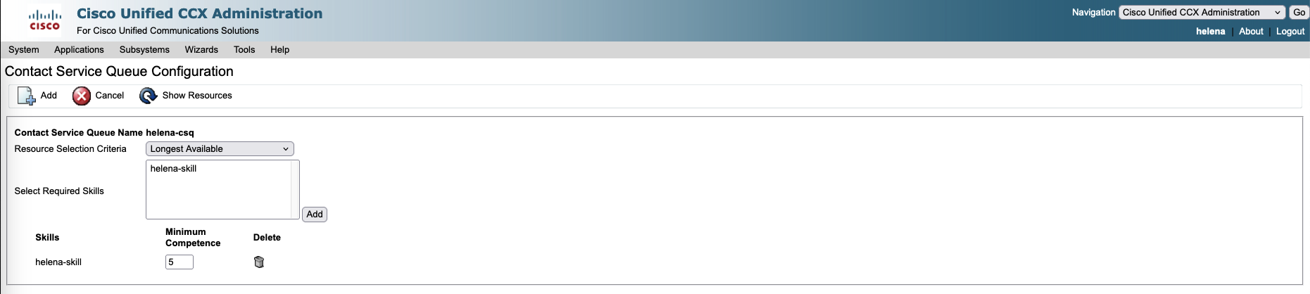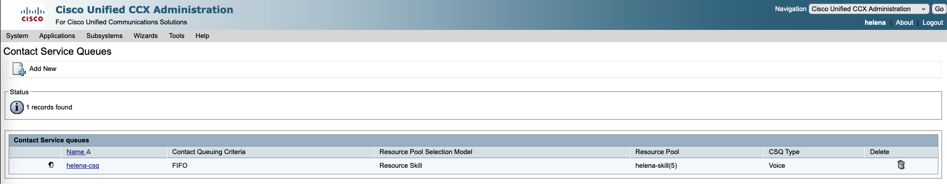 Next on Subsystem » RmCM » Contact Service Queue, create a new CSQ used to manage and route incoming customer calls to the appropriate agents based on their skills
