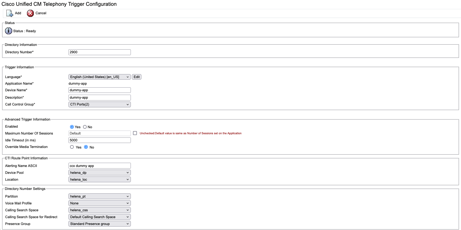 Over at CUCM, a new CTI Route Point will be created with the same extension number