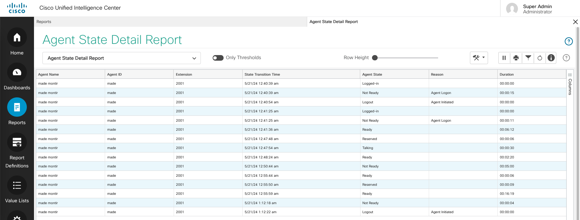 To see agent’s aux activities, open Agent State Detail Report