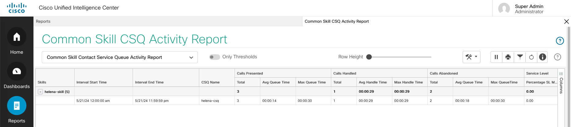 To see the reports grouped by the skills, open Common Skill CSQ Activity Report