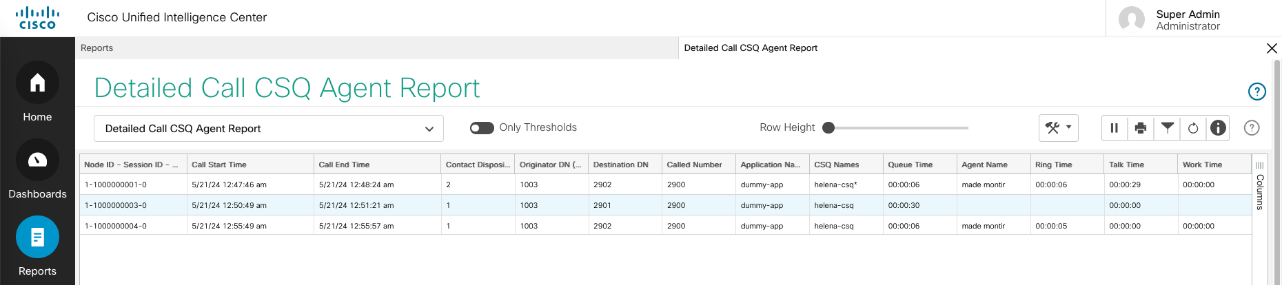 To actually see all the calls received by CCX, open Detailed Call CSQ Agent Report