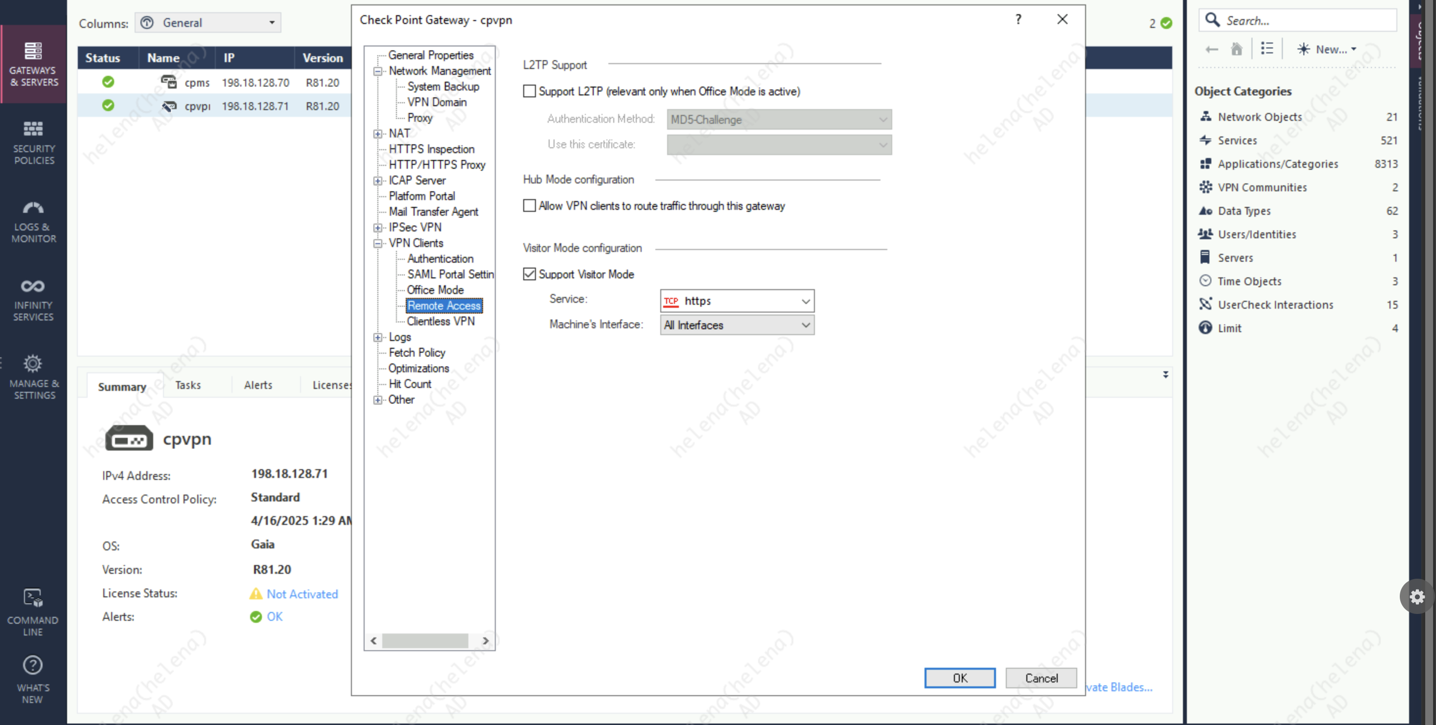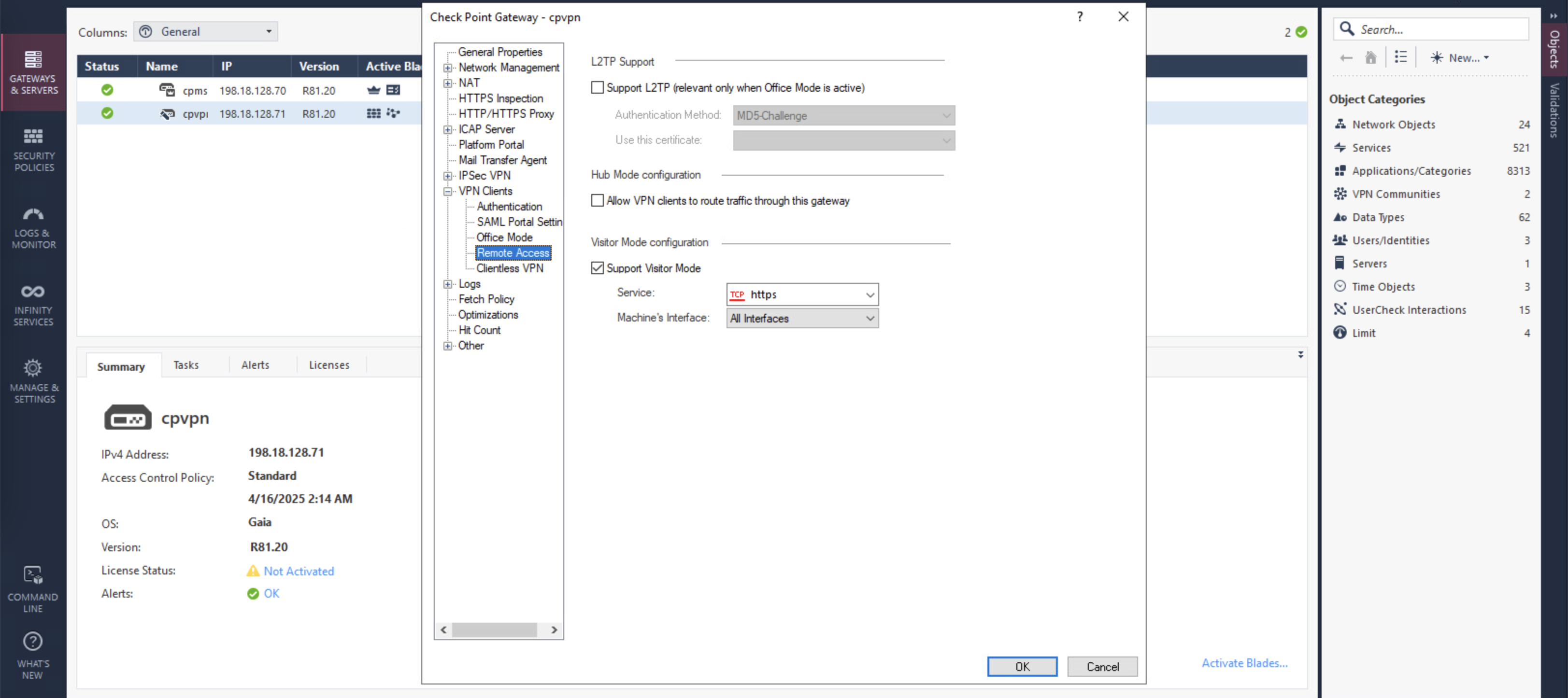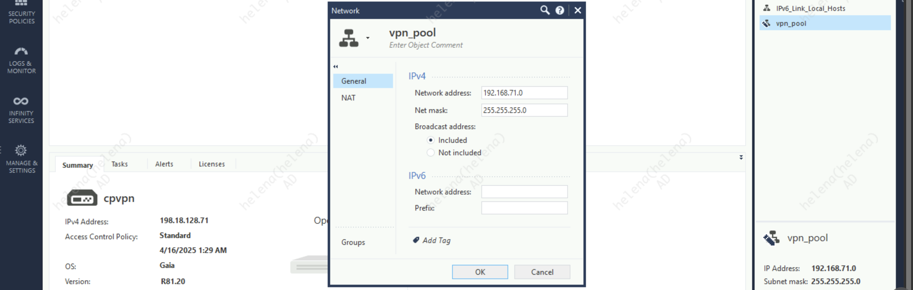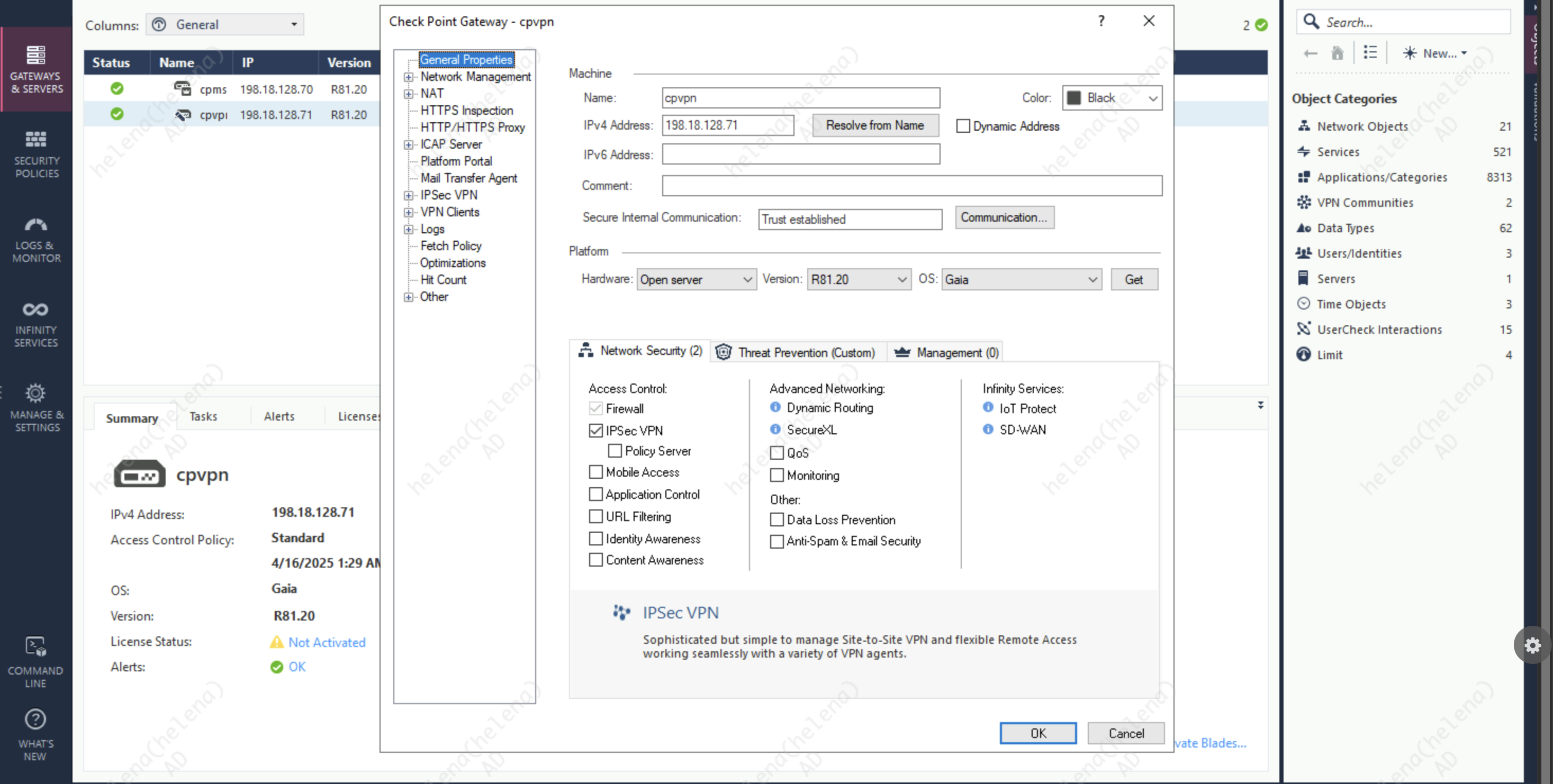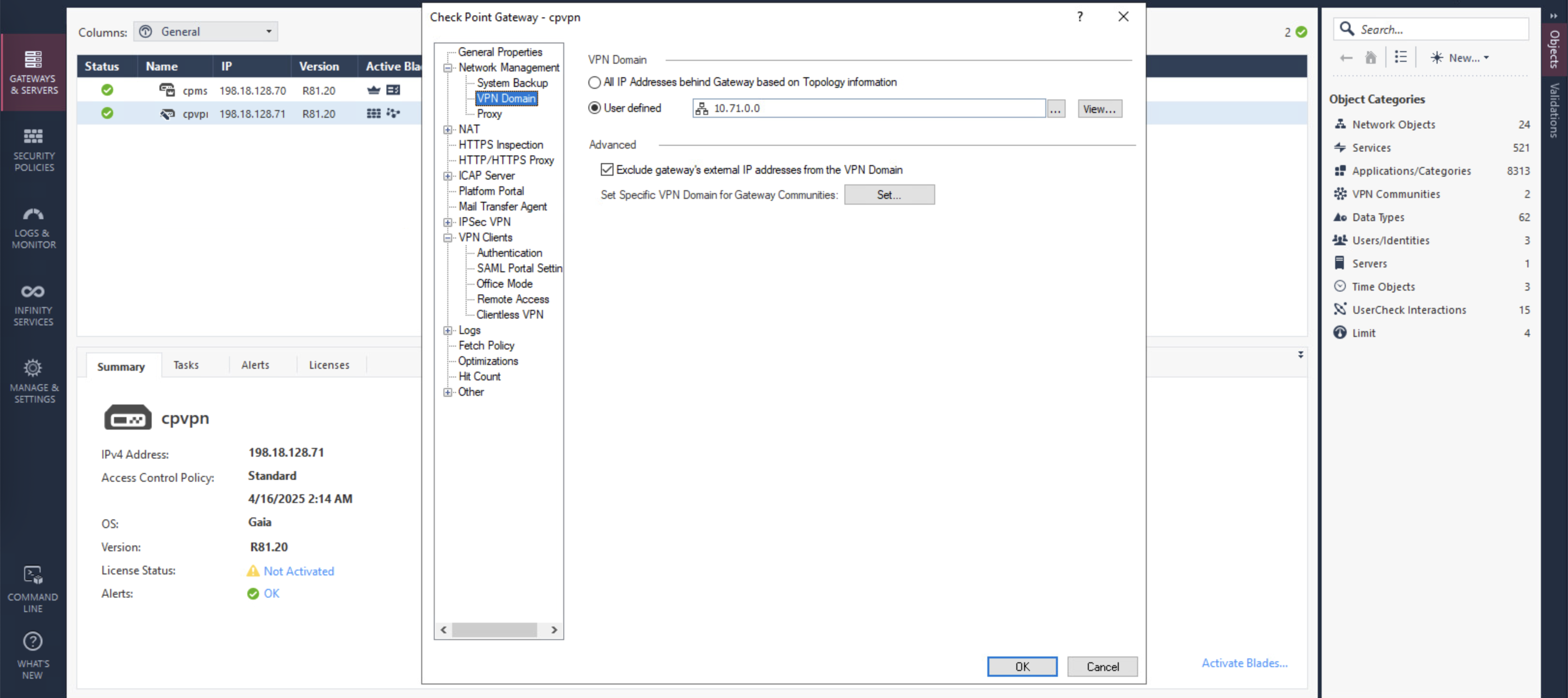 On Check Point SmartConsole, here we enable the IPSec VPN blade
