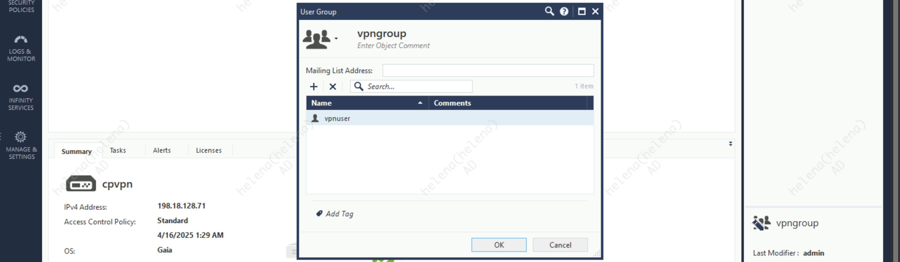 Set that User Group as the VPN Community’s Participant so we can use it to login to VPN