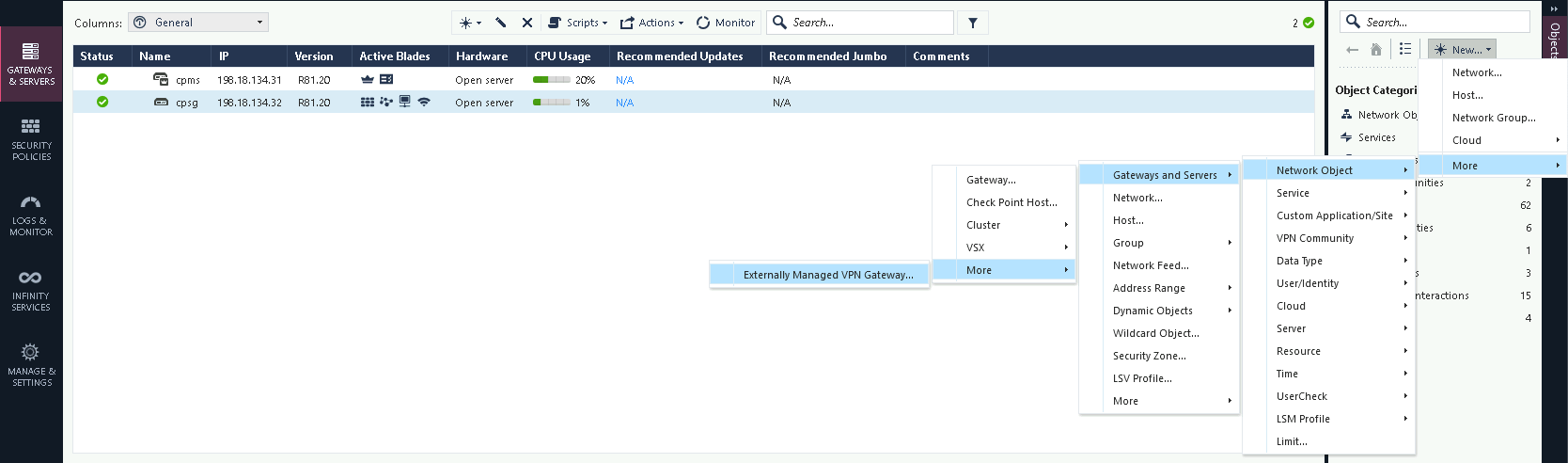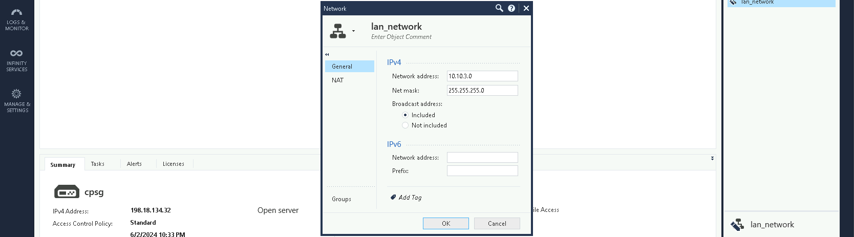 First, create a new network object for the Check Point’s LAN Network