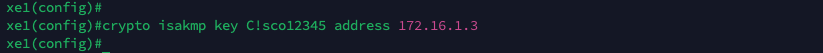 Next we configure a pre-shared key for ISAKMP. This pre-shared key will be used for authenticating a VPN peer with a the address of Check Point Firewall