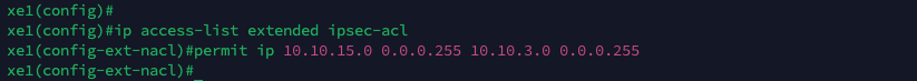 After that, we define an extended IP access control list (ACL) that will be used to specify which traffic should be protected by IPsec when establishing a VPN tunnel.