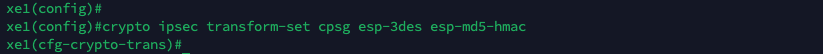 Then we create an IPsec transform set that defines the combination of encryption and authentication protocols that will be used to protect the data being transmitted through the VPN tunnel.