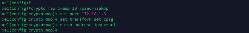Next we configure a crypto map to establish an IPsec VPN connection